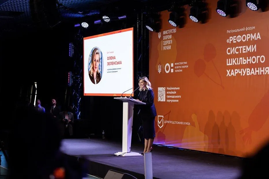 Дружина президента України Олена Зеленська бере активну участь в реалізації реформи системи шкільного харчування. Для того, щоб допомагати освітянам переходити на нову концепцію харчування, перша леді влаштовує форуми, де обговорюються найважливіші проблеми, присвячені цій темі.