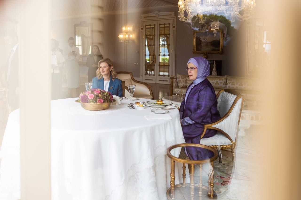 Перша леді розповіла, що у перші тижні війни Еміне Ердоган приймала в Туреччині евакуйованих з України дітей-сиріт. Здебільшого про них і була зустріч перших леді. Пані Ердоган очікує чергову групу дітей, які прибудуть з двох дитячих будинків, що в Одеській області. Перша леді Туреччини назвала це її "дружнім обов'язком".