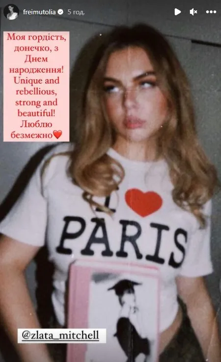 Зазначимо, що Златі 17 лютого виповнилося 17 років. Тож, з нагоди свята Фреймут поділилася світлиною дочки та присвятила їй зворушливі рядки в Instagram-Stories.