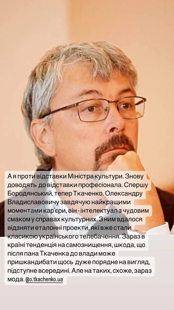 Телеведуча Ольга Фреймут, яка повернулась до України на тлі критики, несподівано прокоментувала відставку Олександра Ткаченка, Міністра культури та інформаційної політики. Вона висловилась проти та пояснила свою думку.