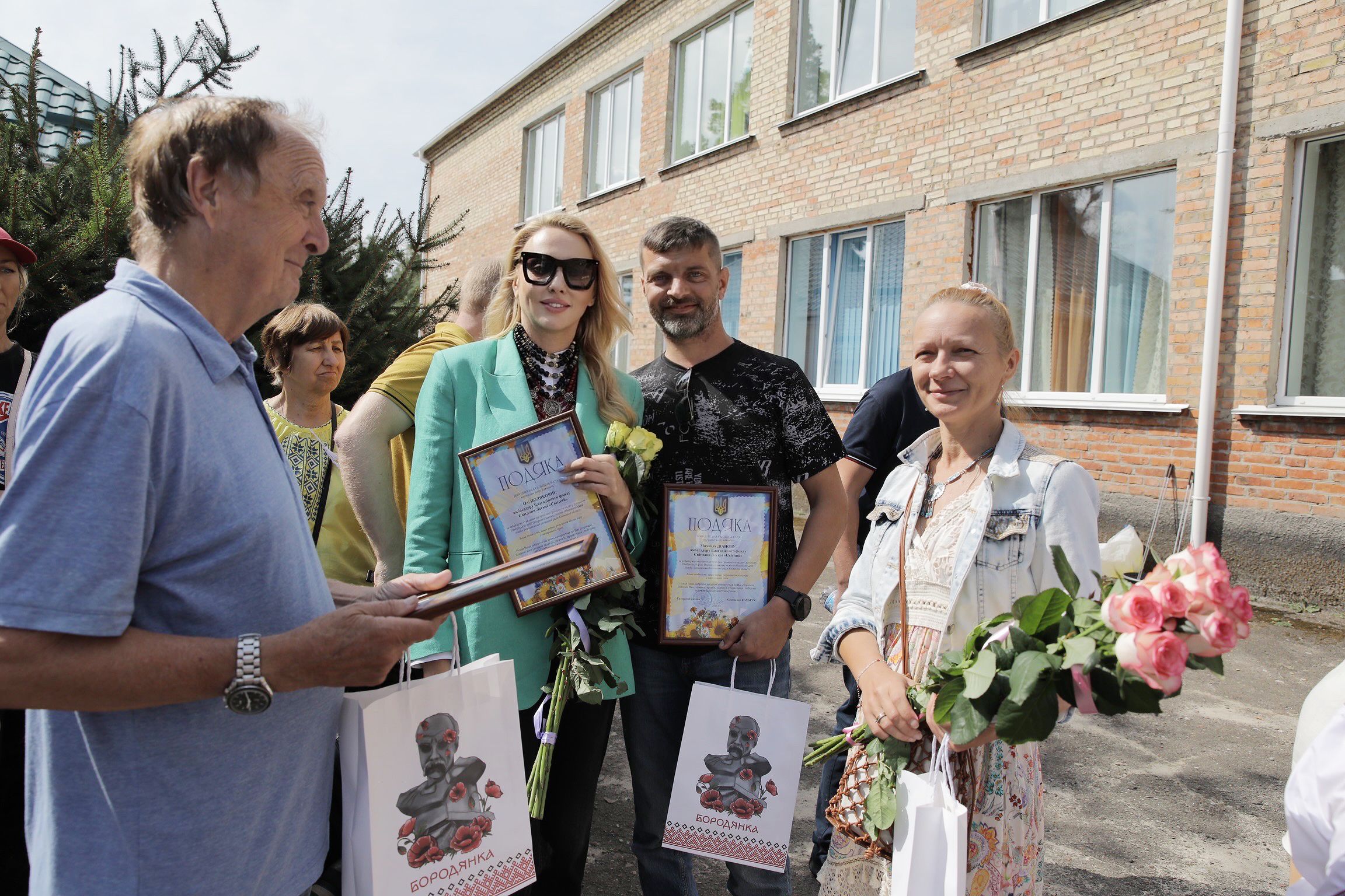 Минулого року цей заклад постраждав від рук окупантів. На його відбудову однією з перших задонатила Оля Полякова. Тому її запросили на урочисте відкриття будівлі, яку успішно відреконструювали.