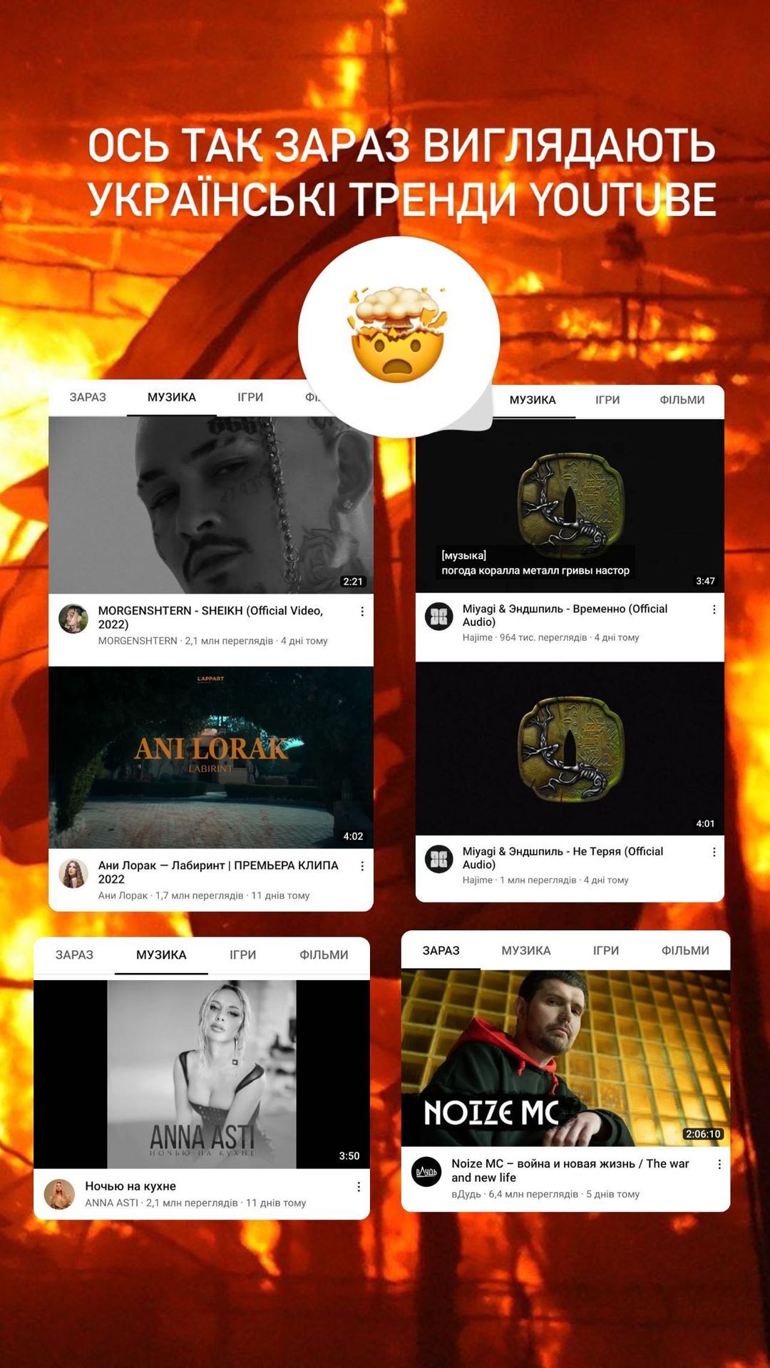 У наступному сторіз Оля Цибульська вразила трендами ютубу – там російський Моргенштерн, Юрій Дудь, Ані Лорак та інші гурти. Через це знаменитість різко звернулась до українців.
