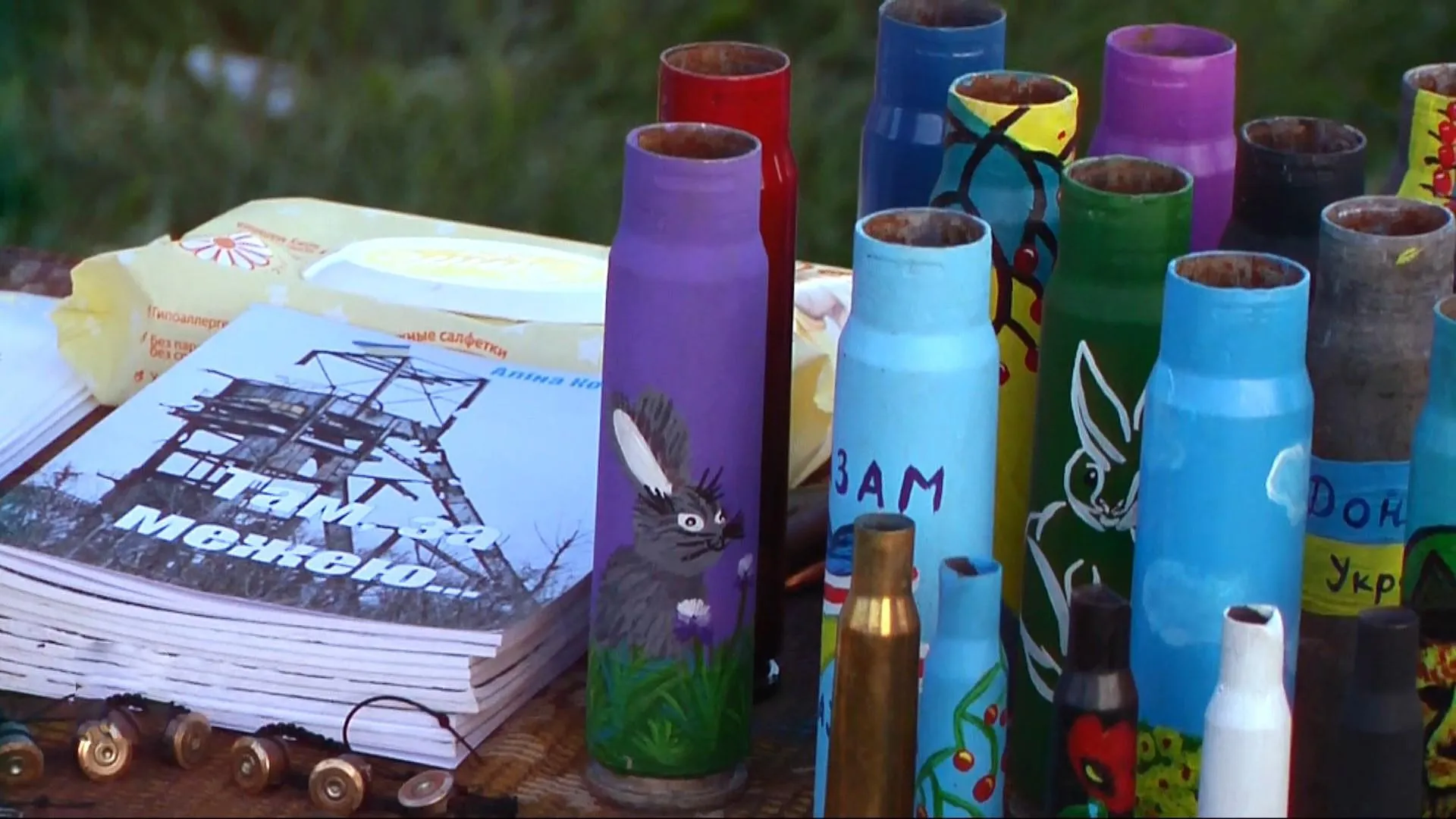 "Це в нас такі військові сувеніри: декоровані гільзи, найпростіші. З них починалася наша діяльність, ще не було благодійного фонду", – прокоментувала свої сувеніри керівниця благодійного фонду Аліна Косовська.