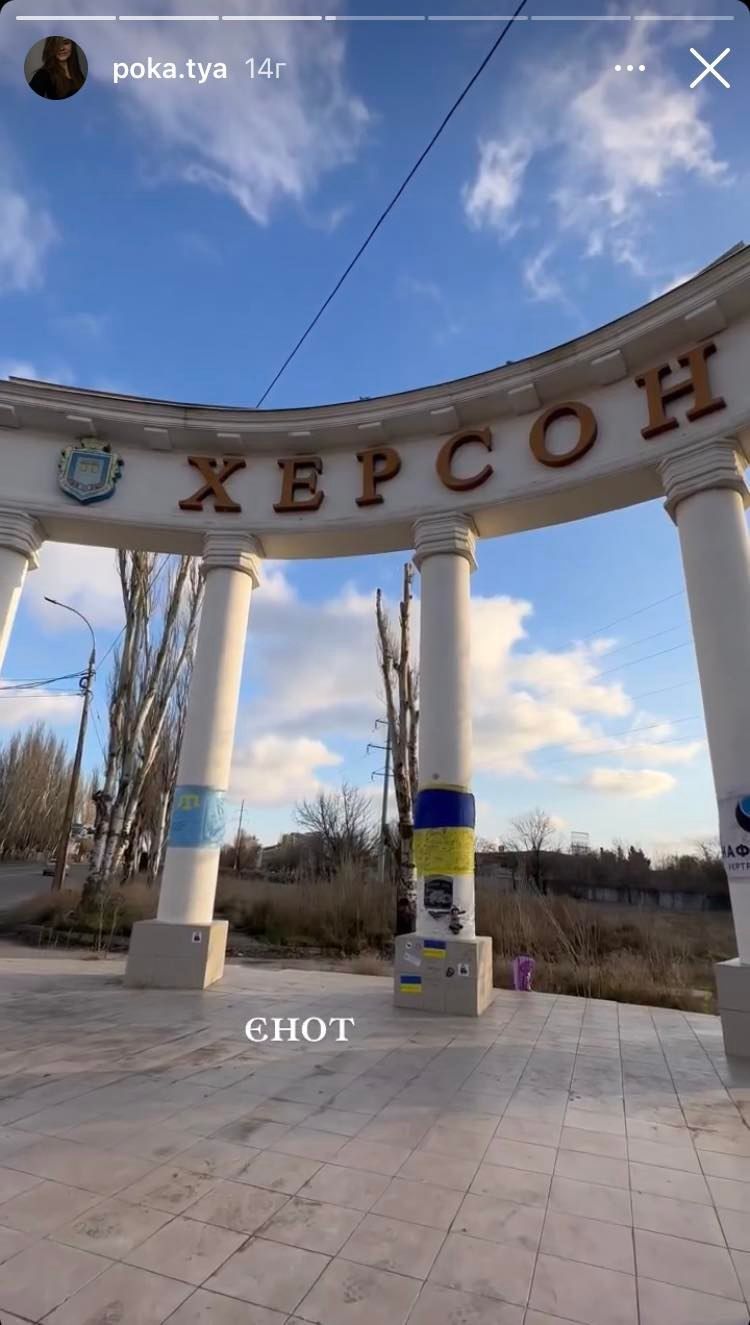 "Хай рассасія і незгоди не роблять вам в житті погоди", – написав Остапчук та показав себе на в'їзді до славетного міста Херсон.