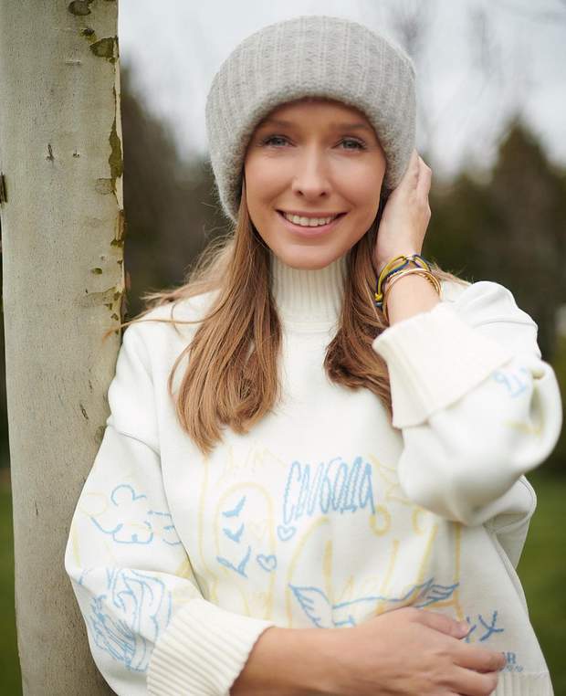 Ведуча сфотографувалася у своєму саду у в'язаному светрі "Незалежна" з синьо-жовтими написами "свобода", "дім", "соборність". Вона пригадала, як творці "взяти за три дні" погрожували, що цієї зими українці замерзнуть і зневіряться, але цей задум окупантів провалився, які і всі попередні.