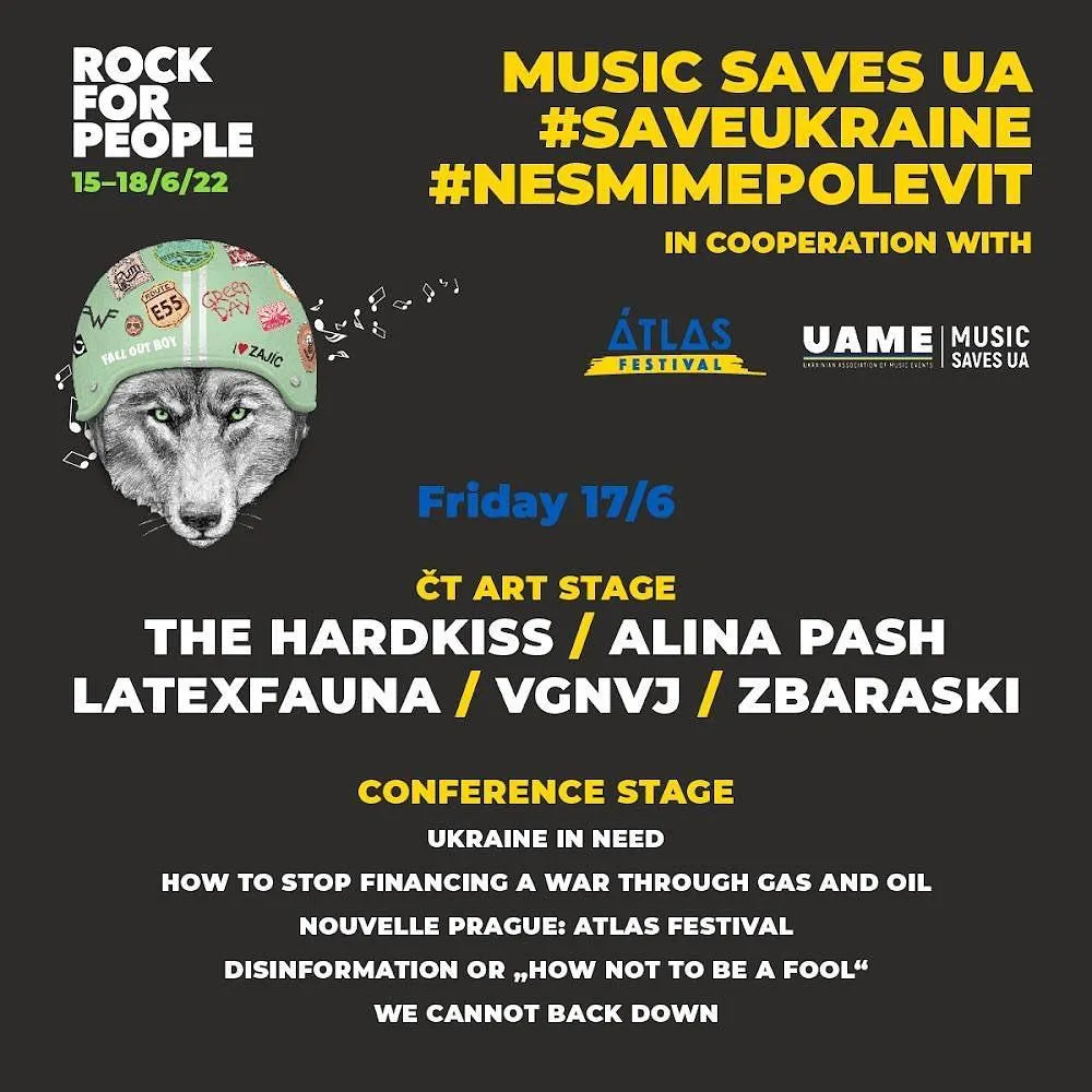- 17 червня, Градес-Кралове, Чехія. The Hardkiss виступить на спеціальній сцені чеського Rock for People. Як повідомила Юлія Саніна, під час фестивалю проводитиметься благодійний збір коштів, які будуть зараховані до Music Saves UA. Гроші мають допомогти українцям, які постраждали через війну.