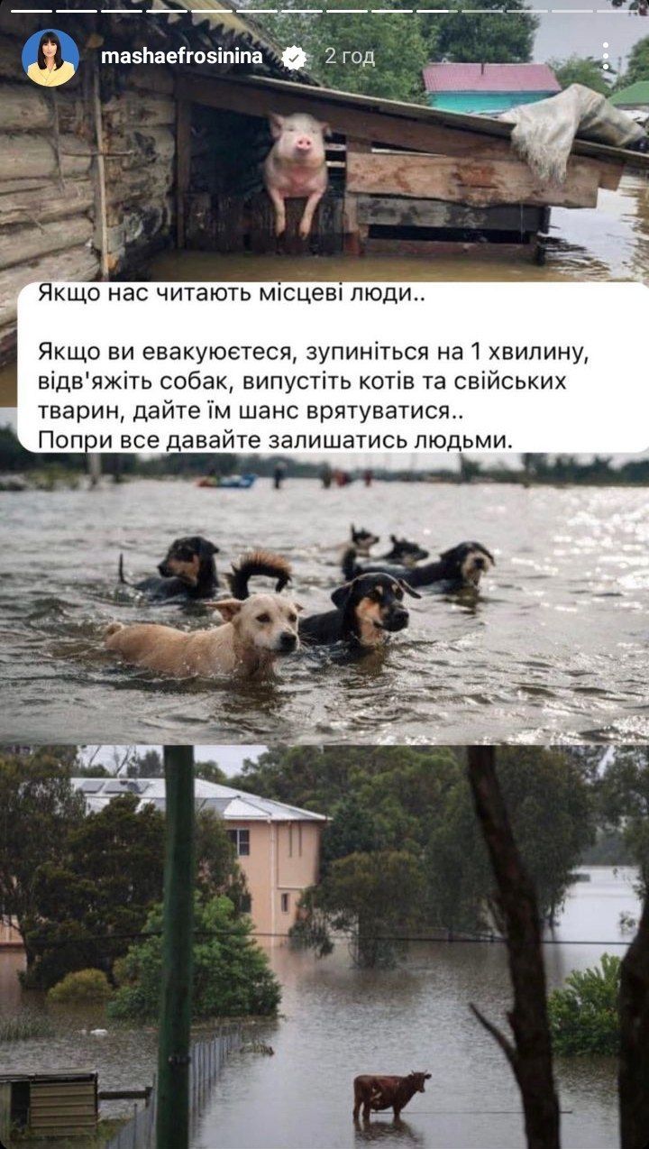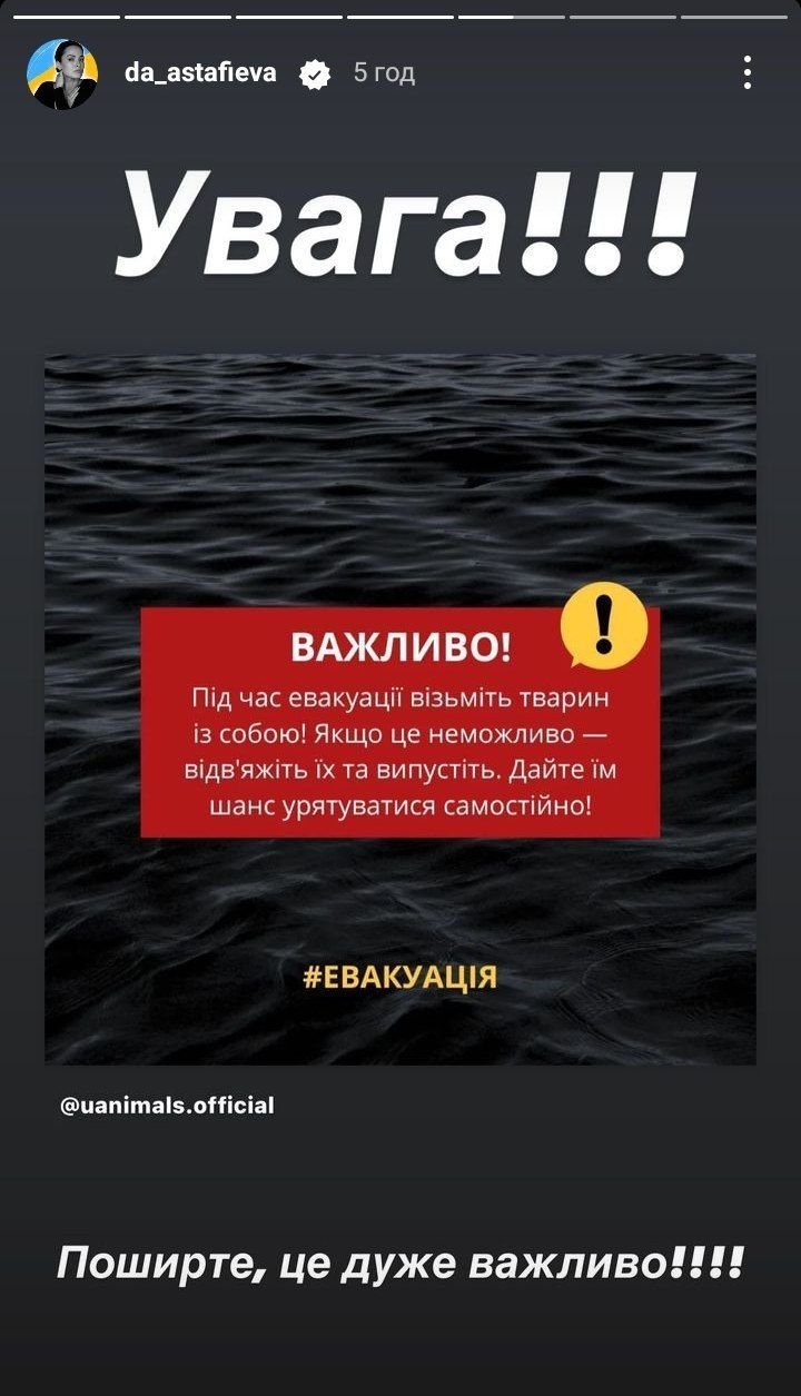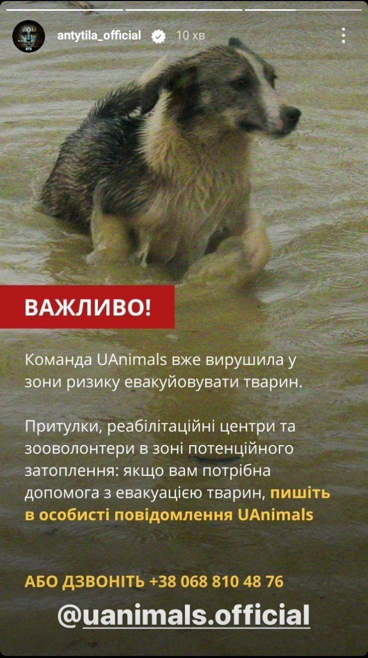 Росіяни підірвали Каховську ГЕС, спричинивши загрозу для тисяч українців та їхніх домашніх улюбленців, свійських тварин й узагалі всього живого. Українські зірки закликають рятувати тварин та за можливості брати їх з собою на евакуацію.
