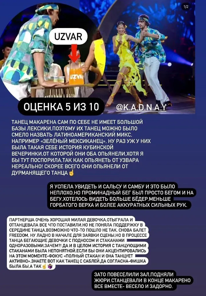 Ілона Гвоздьова назвала актора перспективним учасником, але й негативно висловилась про його номер у 4 ефірі. Також зірка заявила, що останній сезон "Танців" проблемний через невдалих хореографів.