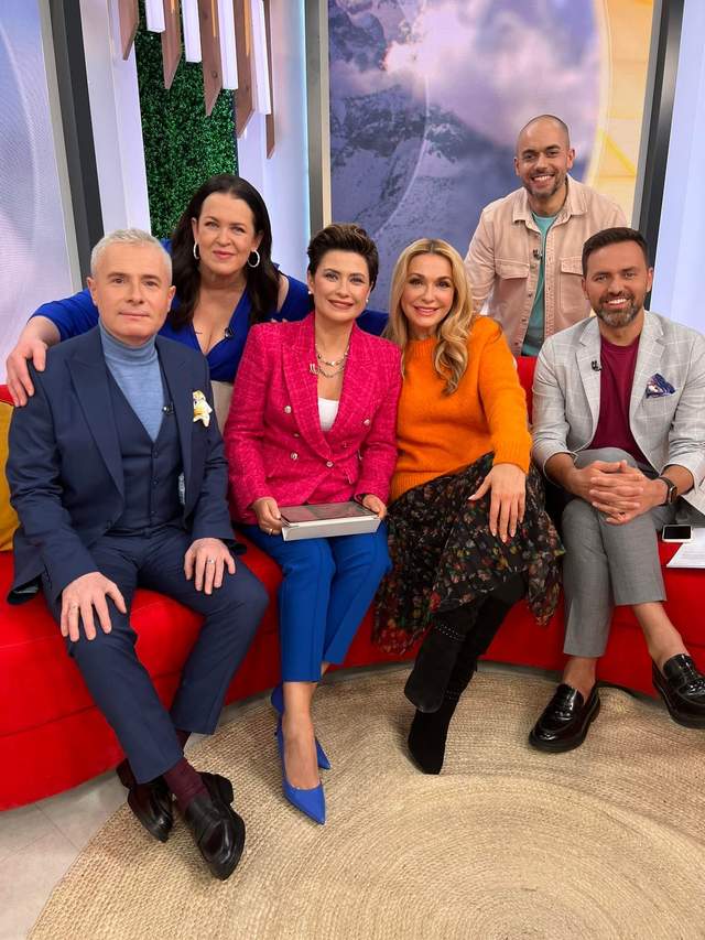 Руслана Писанка на роботі та з колегами / Фото з фейсбуку телеведучої