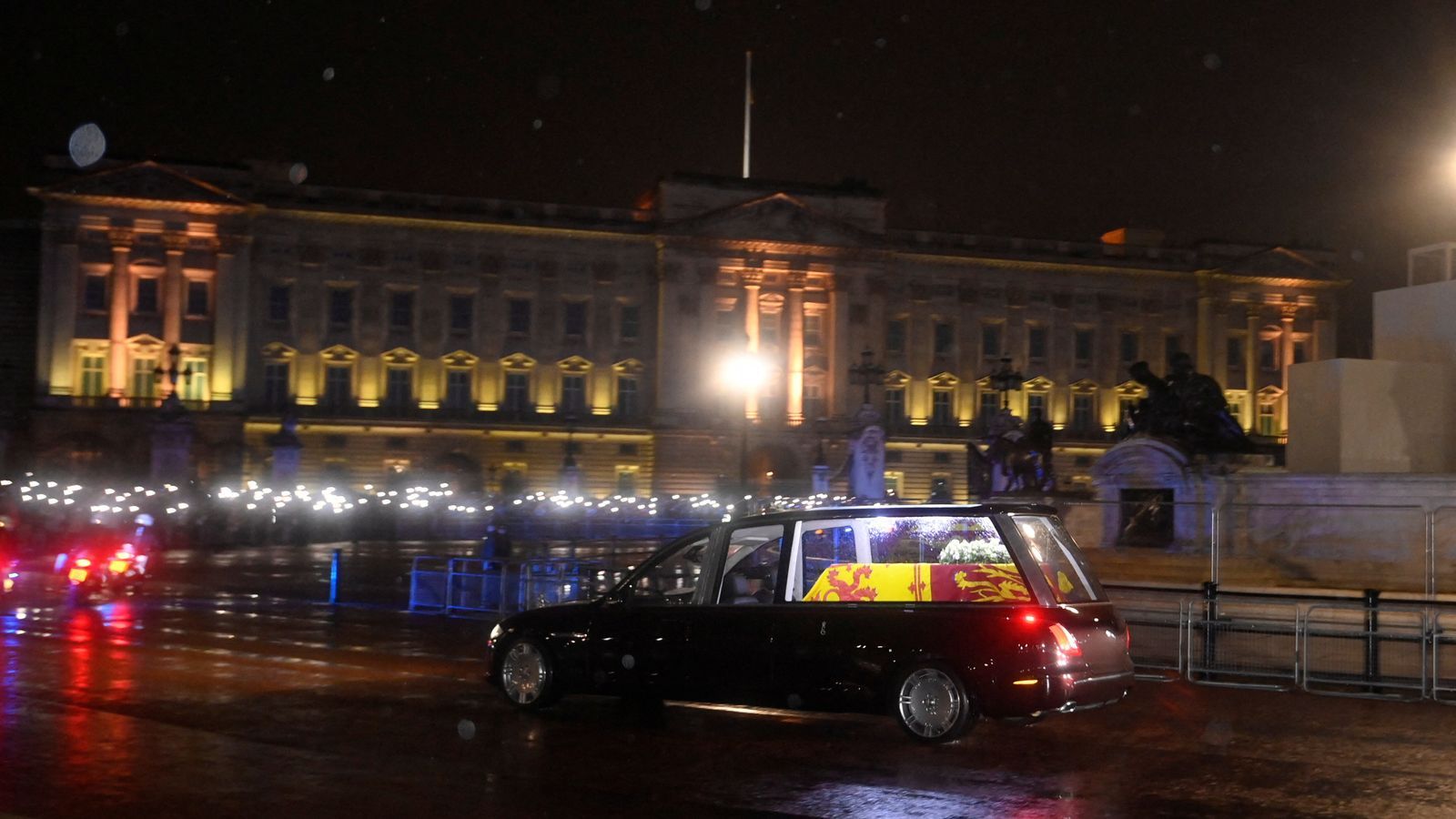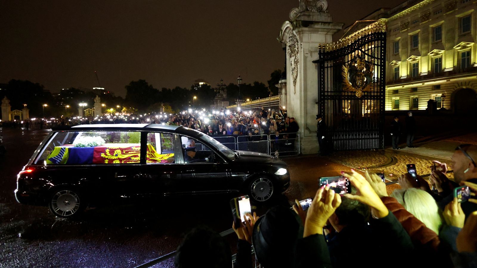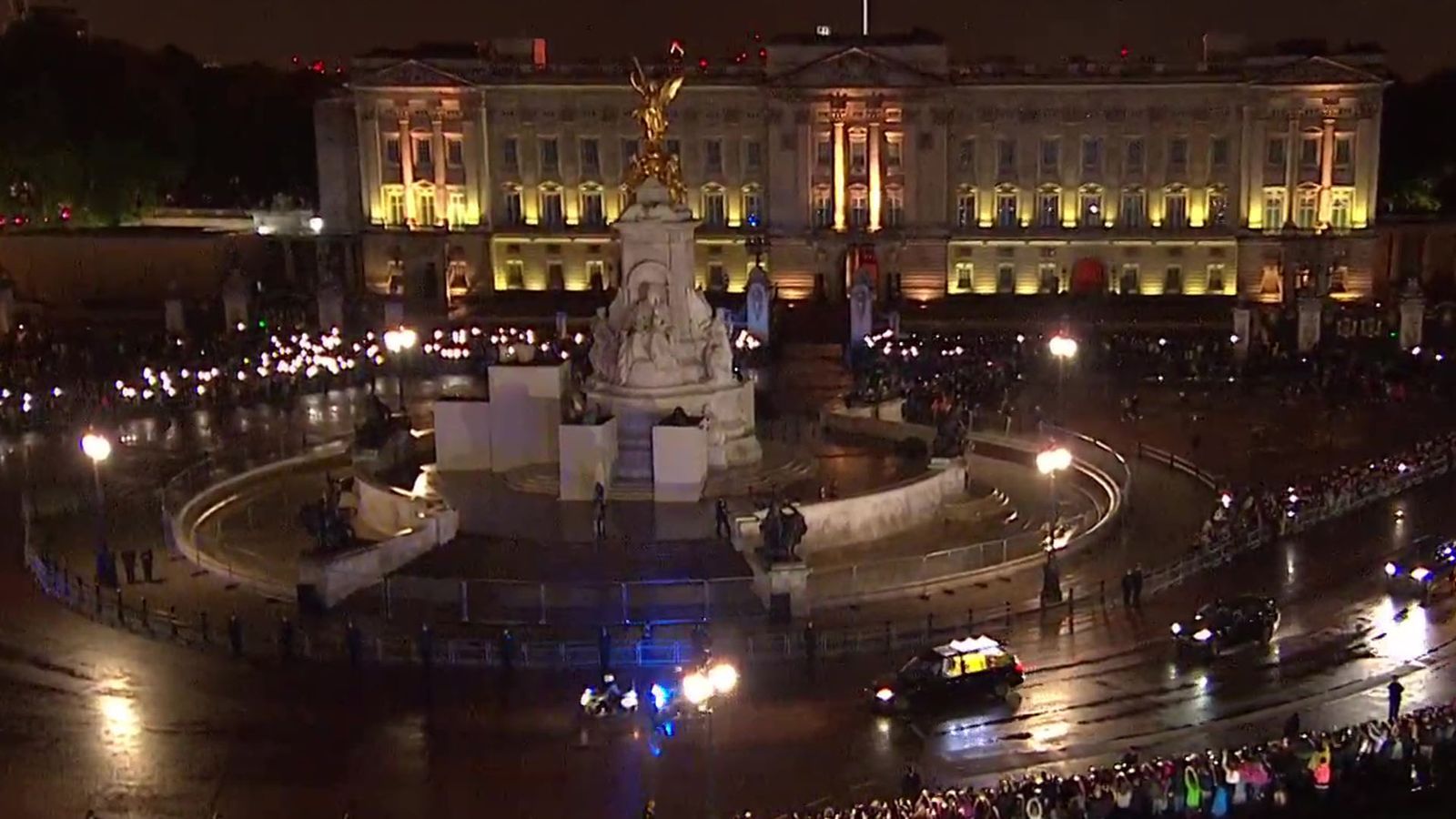 Після приблизно години подорожі процесія прибула до Букінгемського палацу. Багато людей, що стояли вздовж вулиці, поклали парасолі на знак поваги, а декого можна було побачити, як витирають сльози з очей.