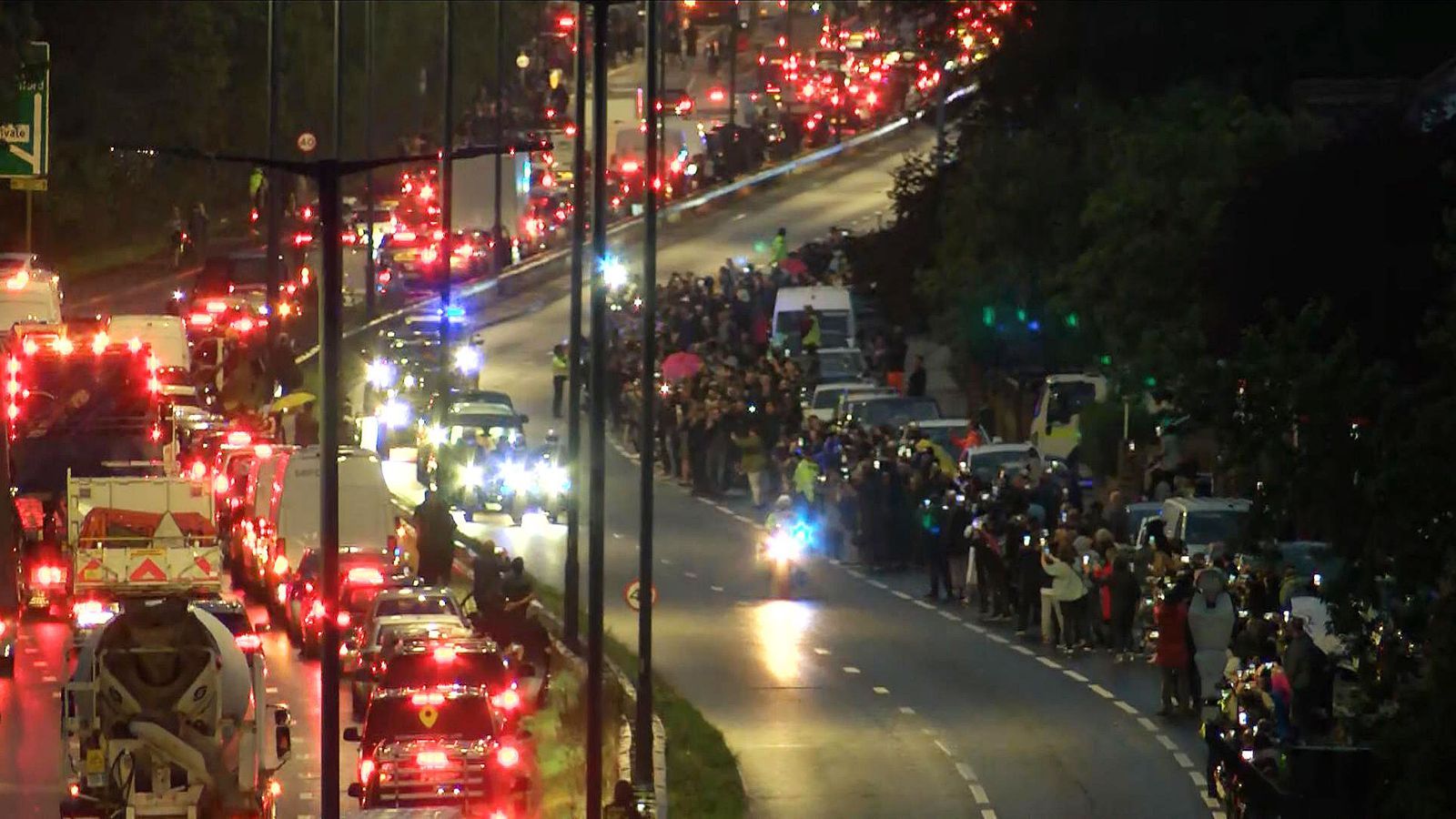 На вулицях Единбурга вишикувалися величезні натовпи, щоб спостерігати, як труна королеви їде до Букінгемського палацу.