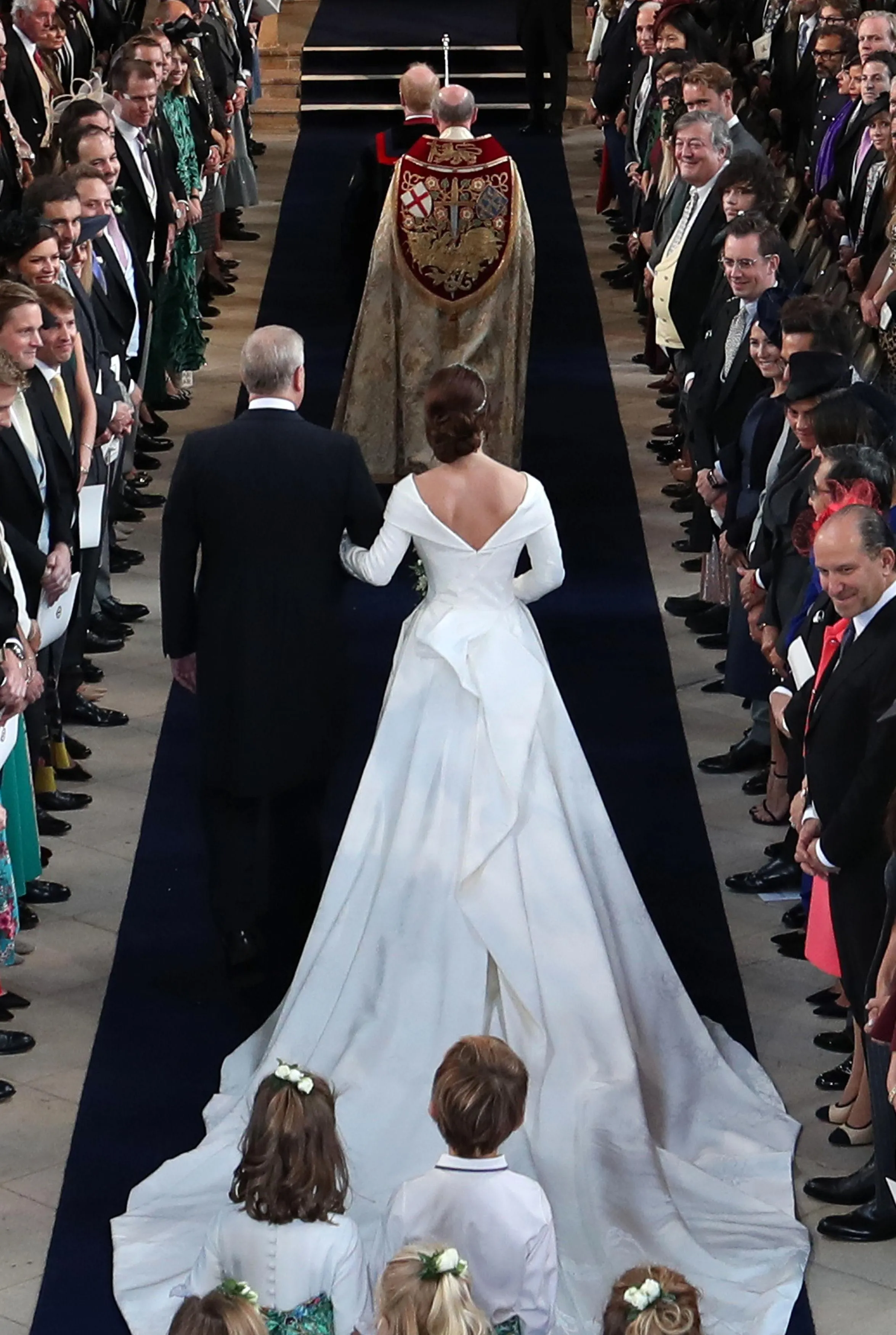 Зворушений наречений Джек Бруксбенк не стримував своїх емоцій та захоплювався виглядом своєї коханої принцеси Євгенії. Як і прийнято, він першим дав обітницю шлюбу та одягнув на руку Євгенії обручку з рук архієпископа.