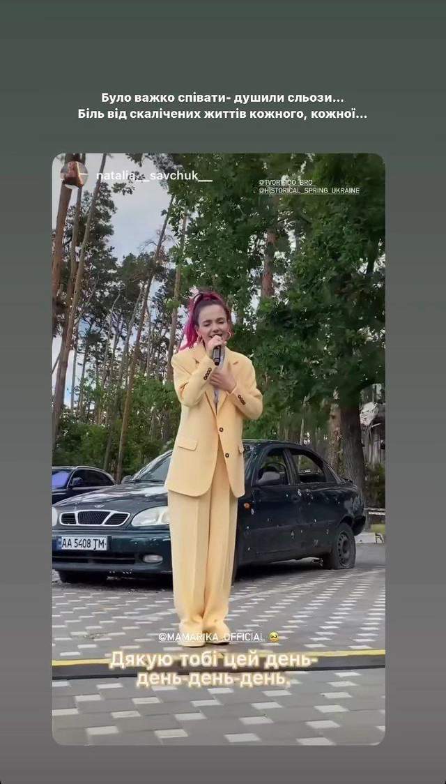 MamaRika зізналась, що виступ був для неї дуже емоційним і вона проплакала всю пісню. Також зірка розповіла про благодійний фотопроєкт "Історична весна". Цей проєкт створений для того, щоб привернути увагу громадськості та розповісти про всі жахи, які пережили жінки через росіян.