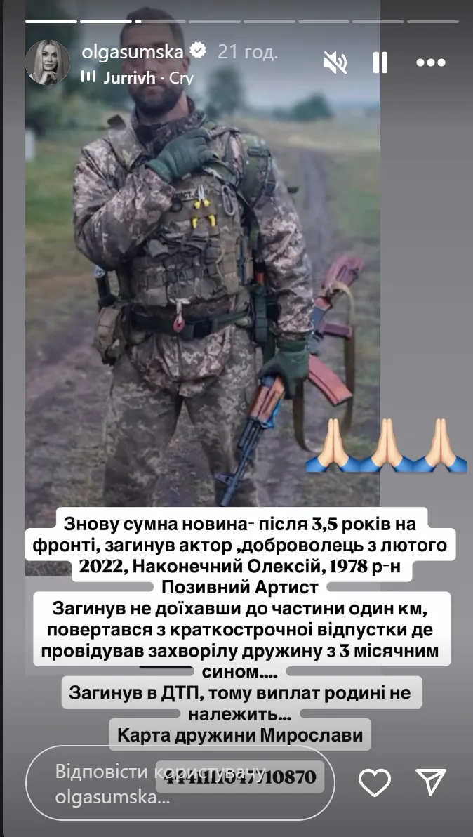 Умер Алексей Наконечный / Скриншот из инстаграм-сторис