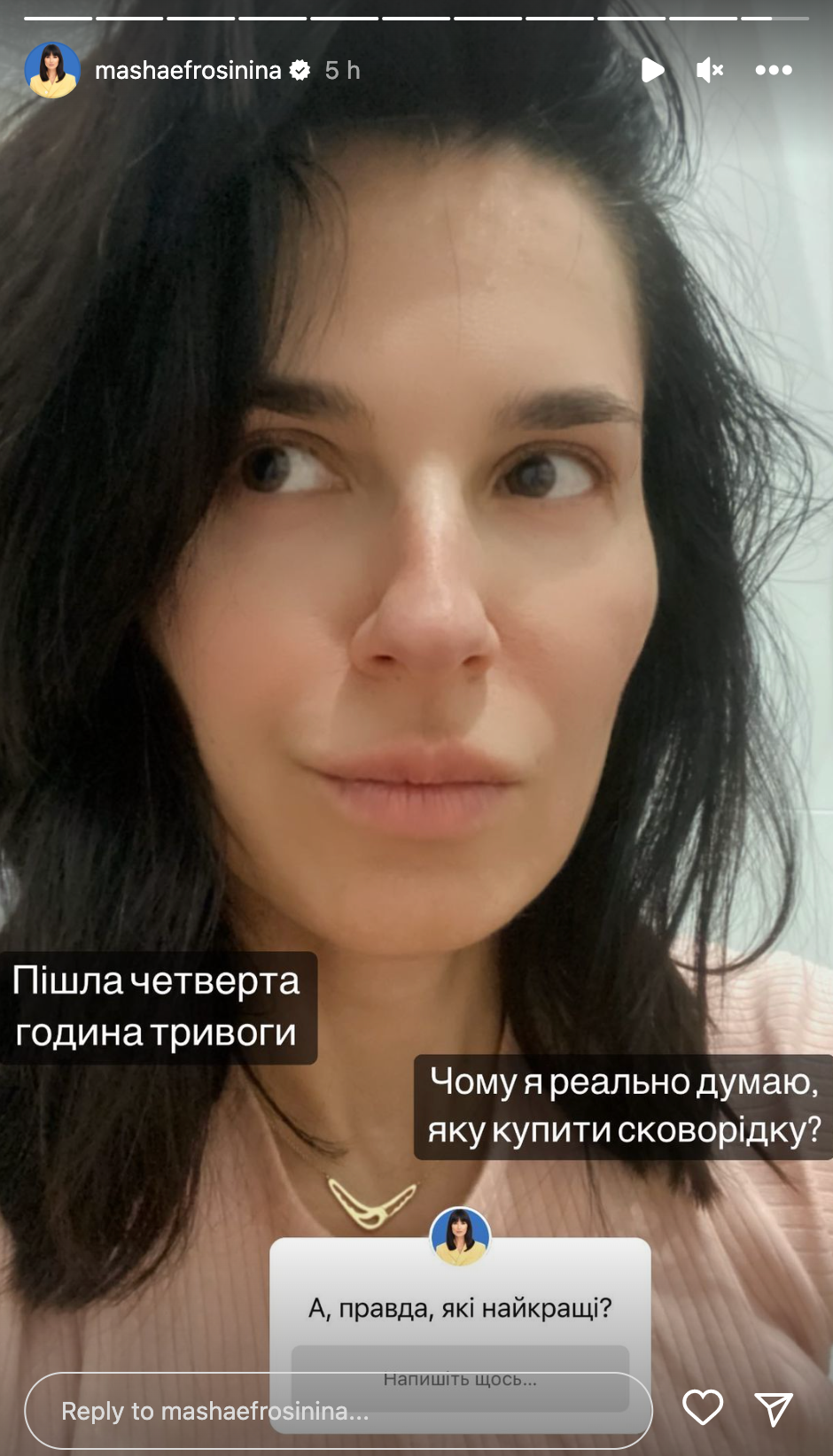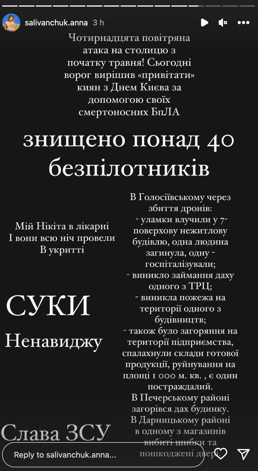Анна Саливанчук отреагировала на атаку Киева / Фото с ее инстаграмм-сторис