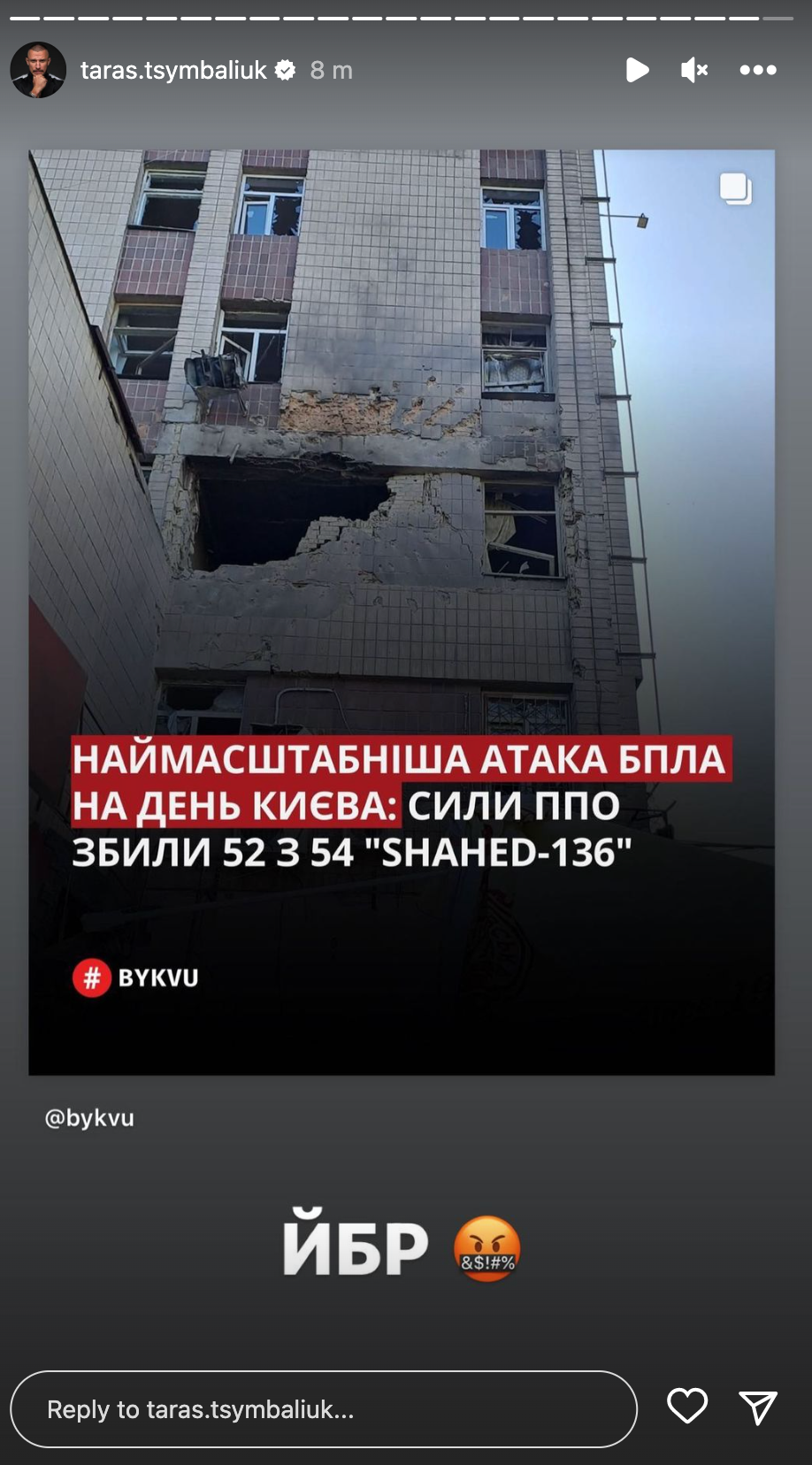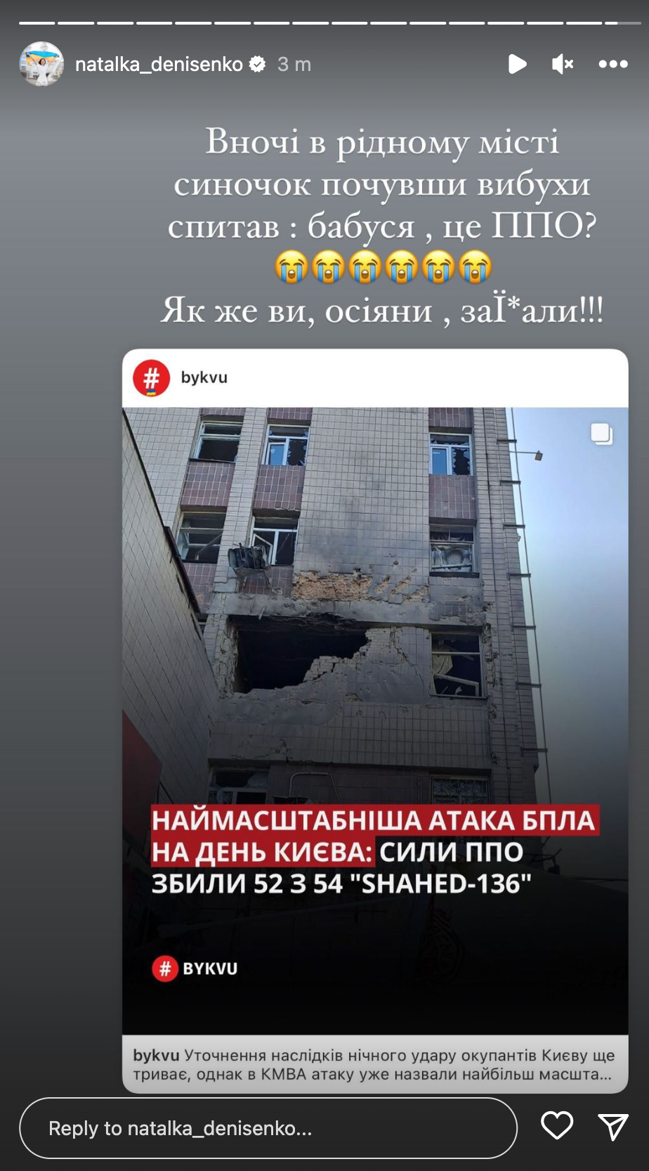 Как украинские артисты реагируют на ночную атаку / Фото с инстаграм-сторис