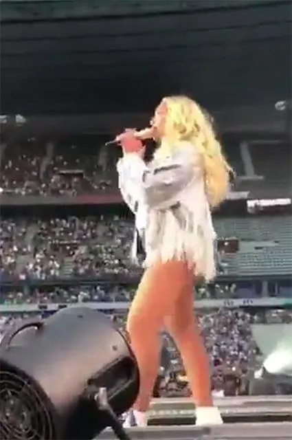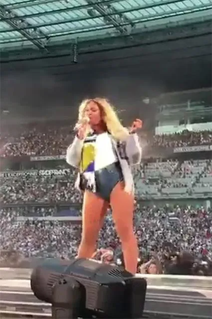 Звезда вышла на сцену Парижа в обтягивающем боди и коротких шортах, которые заметно выделили ее округлый живот. Фанаты возле сцены были вне себя от эмоций и оставляли в сети множество вопросов, действительно ли беременна Бейонсе и когда она оповестит об этом всю свою публику.