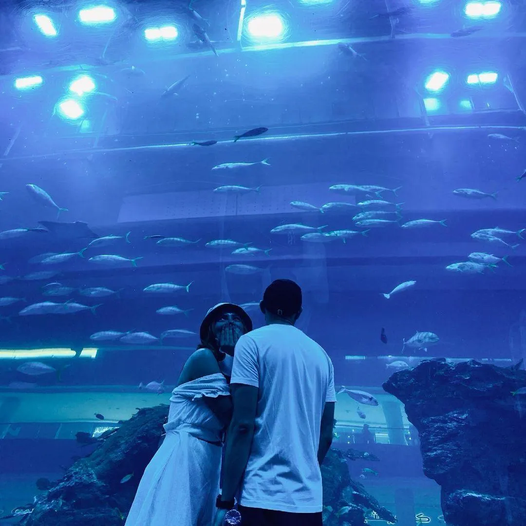 Пара отправилась на отдых в Дубае. Дарья с бойфрендом посетила океанариум, где и сделала фотографию с любимым. Однако, пока звезда не хочет показывать лицо мужчины, ведь скрывает его личность. Для прогулки Петрожицкая выбрала белое воздушное платье с открытыми плечами.