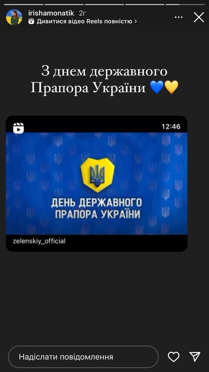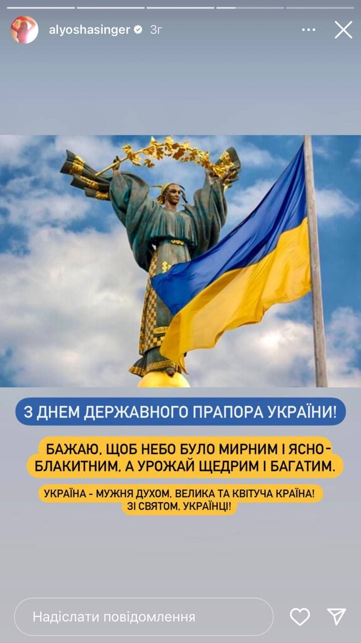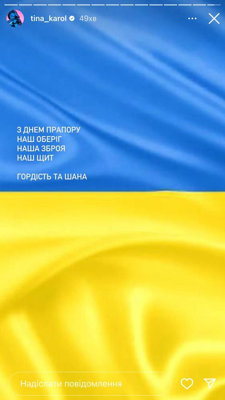 Смотрите фото, как звезды поздравляли украинцев с Днем Государственного Флага / Скриншоты из инстаграмм-сторис