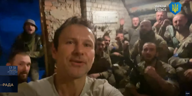 Святослав Вакарчук с бойцами ВСУ в День Независимости / Скриншот с видео