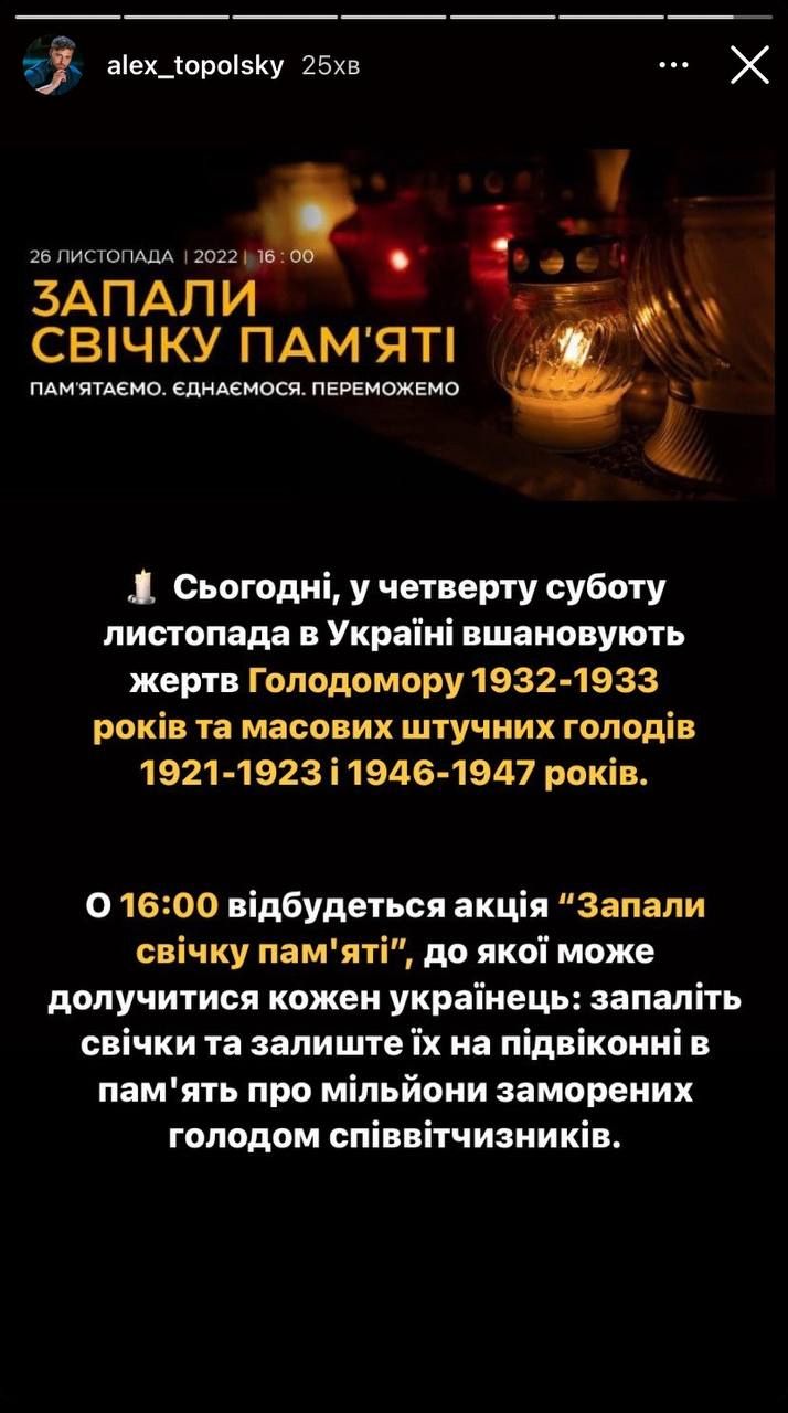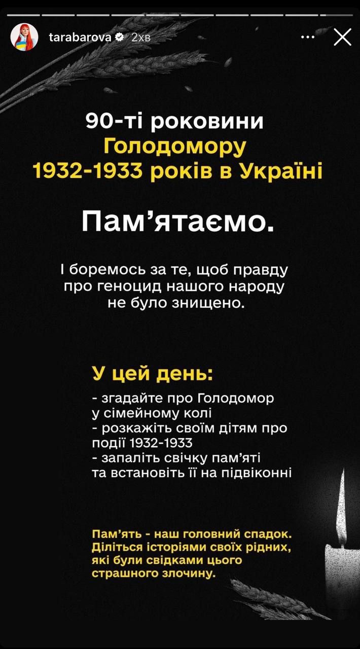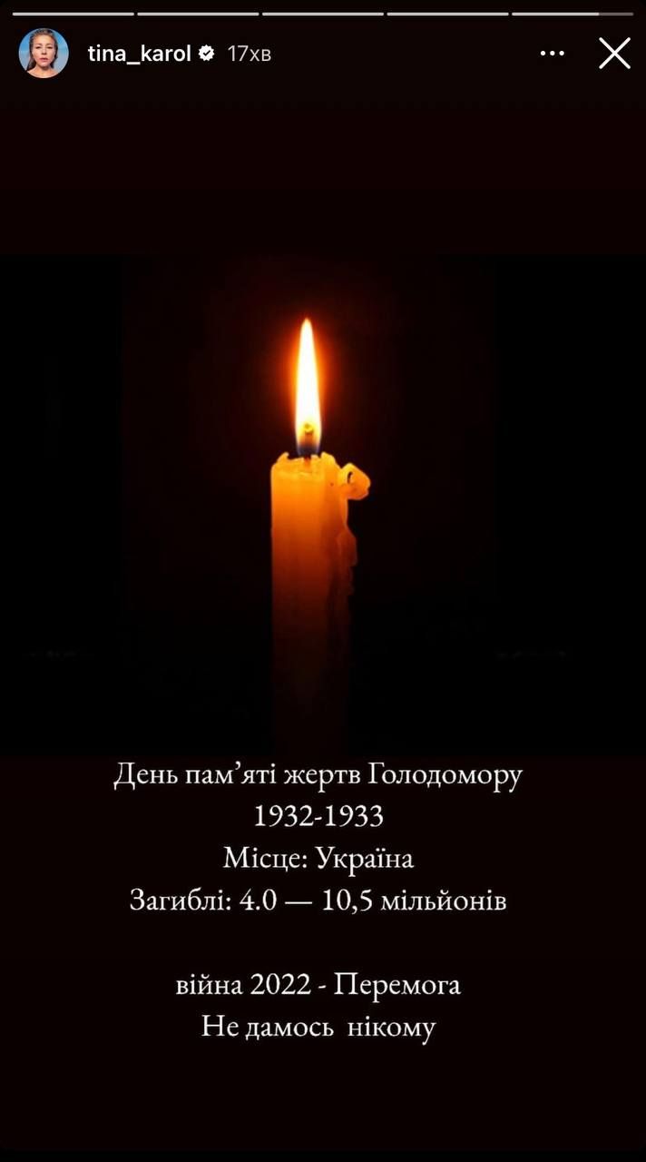 Звездный бомонд чтит память жертв Голодомора / Скриншоты инстаграм-сторис звезд