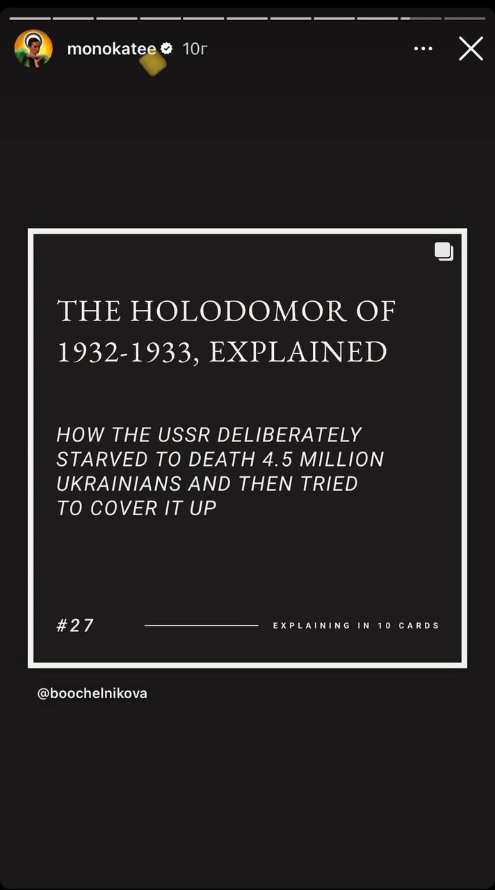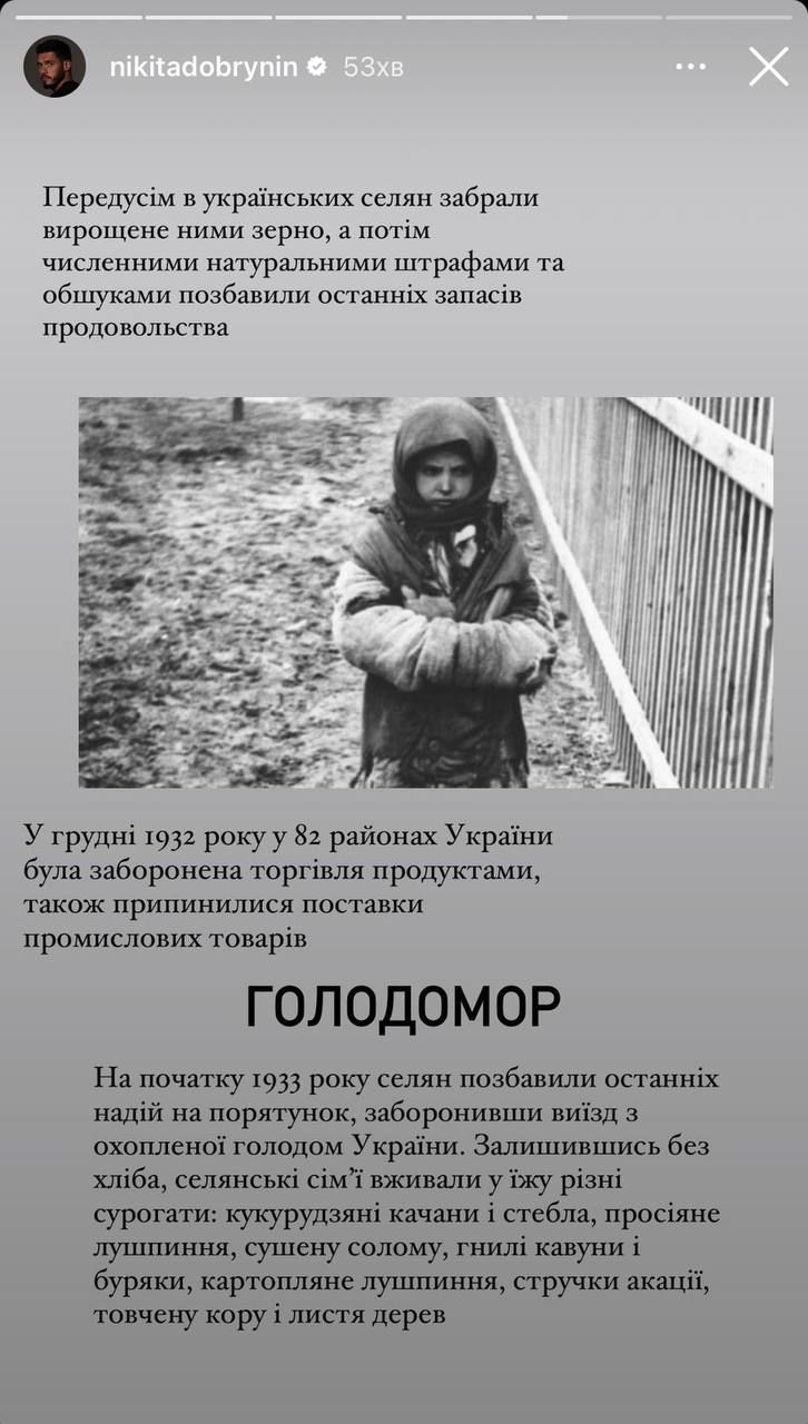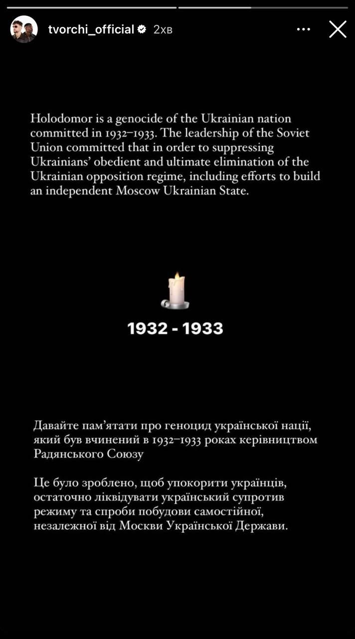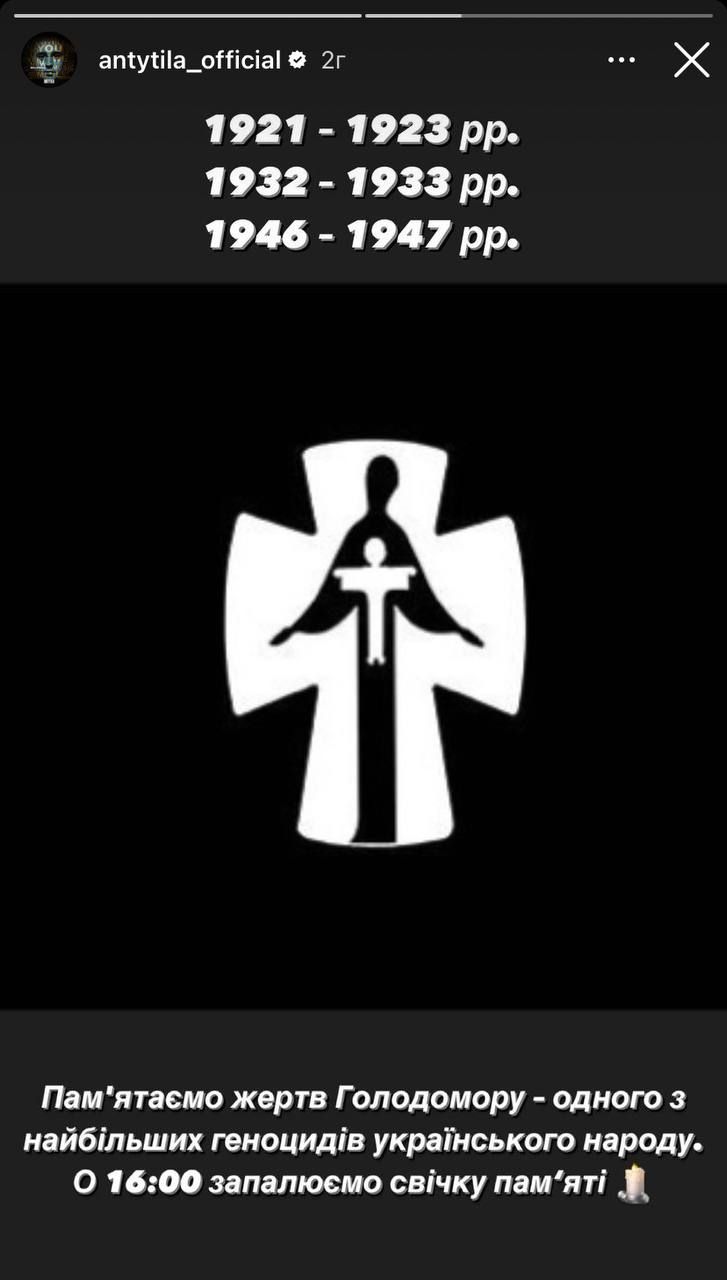 Многие звезды вспоминают о голодоморах в инстаграм-сторисах. Знаменитости призывают украинцев в 16:00 зажечь свечу памяти. Мы не имеем права забыть о тех, чьи жизни забрали советские преступники.