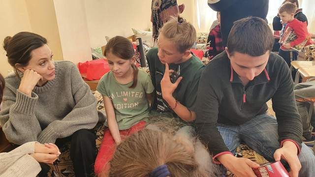 Известно, что в Бориславе Львовской области Анджелина Джоли посетила учебно-реабилитационный центр "Гармония". Там она пообщалась с воспитанниками учреждения, а также с детьми-переселенцами, прибывшими в центр из тех регионов, где длились до сих пор активные боевые действия.