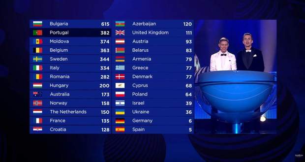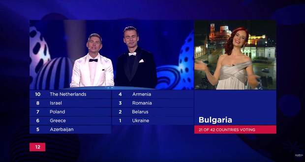 Что касается зрителей, которые имели возможность проголосовать за участников конкурса в течение 40 мин, несколько изменили ситуацию в таблице. Украина получила 24 балла от зрителей.
