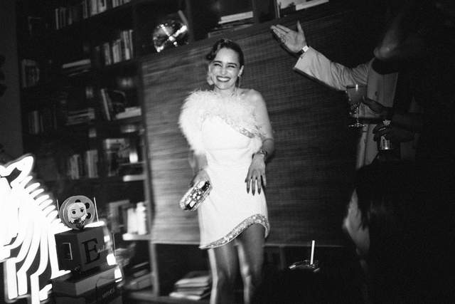 Доподлинно неизвестно, кто из звезд присутствовал на празднике, но на новых черно-белых фотокарточках можно увидеть по крайней мере одного коллегу – шотландского актера Иэна Глена, который играл роль Джораха Мормонта рядом с Эмилией на протяжении всех 10 сезонов сериала.