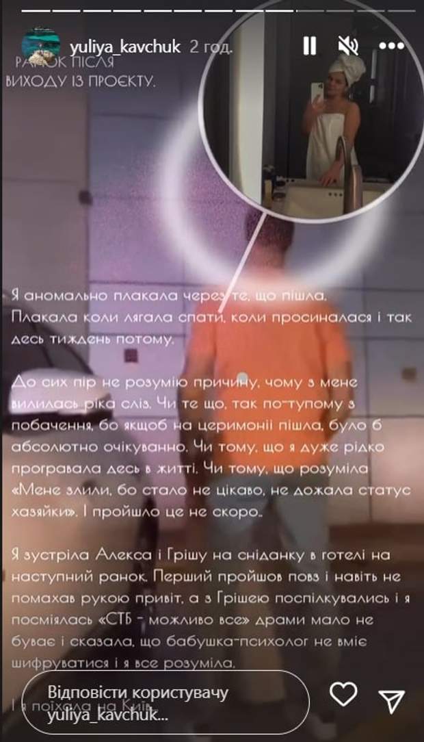 Юля об Алексе Топольском / Скриншот инстаграм-сторис девушки