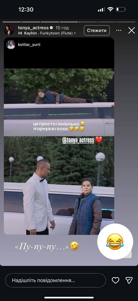У Threads также появилась фотография, где Хижняк в образе Мотри лежит на крыше лимузина.