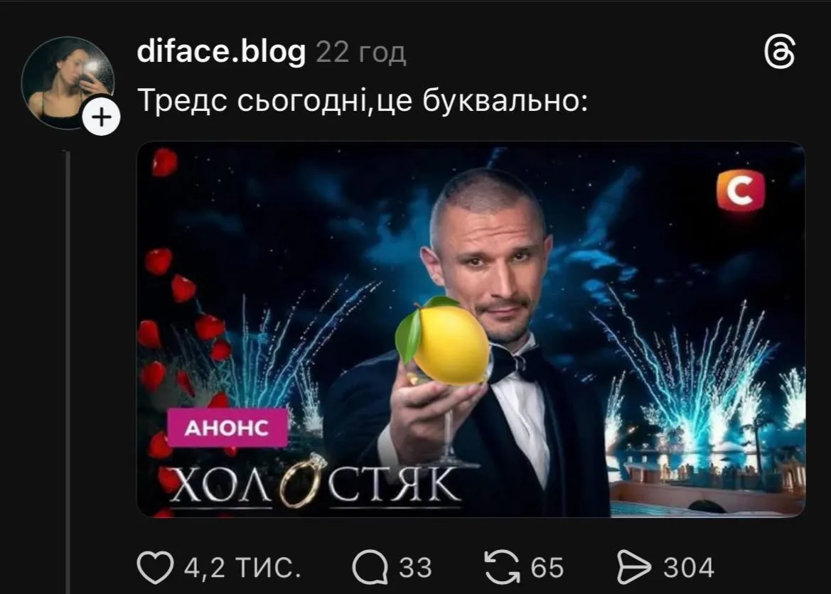 Uklon прокомментировал премьеру "Холостяка-14" / Скриншот с Threads