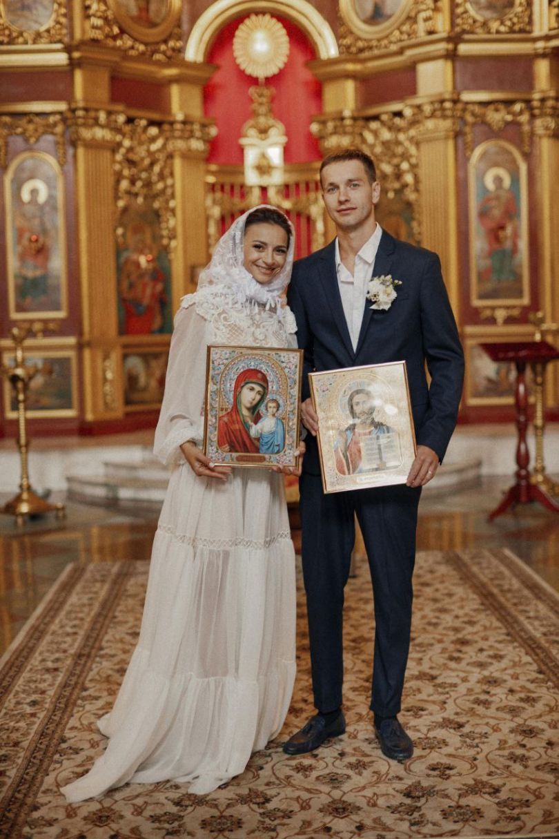 Илона Гвоздева и ее муж Иван Хомякчук обвенчались в Свято-Михайловском Златоверхом монастыре. Они хотели выбрать дату 7 сентября, но произошло немного иначе.