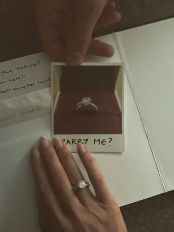 Знаменитость также поделилась, как Рос ей сделал предложение. Мужчина подготовил письмо, а также открытку, где было изображено кольцо и надпись на английском: "Ты выйдешь за меня замуж?".