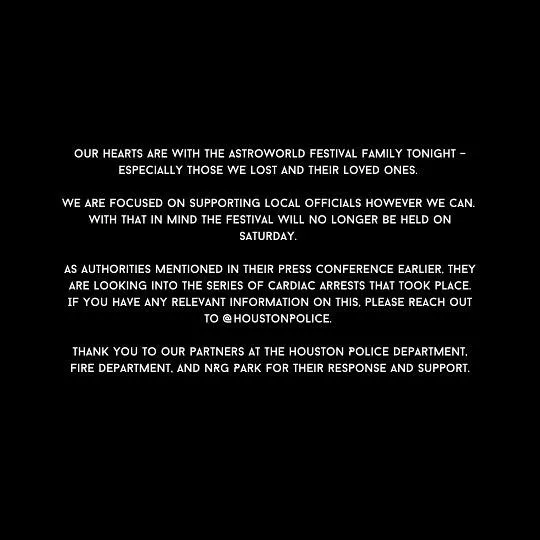 Реакция фестиваля на количество жертв / Фото мз инстаграма Astroworld Festival