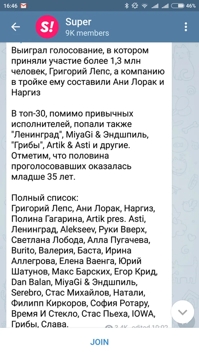 В голосовании приняли участие более 1,3 миллиона человек. Тройку самых желанных возглавил Григорий Лепс, второе место досталось украинской исполнительнице Ани Лорак, а третье место получила певица Наргиз.