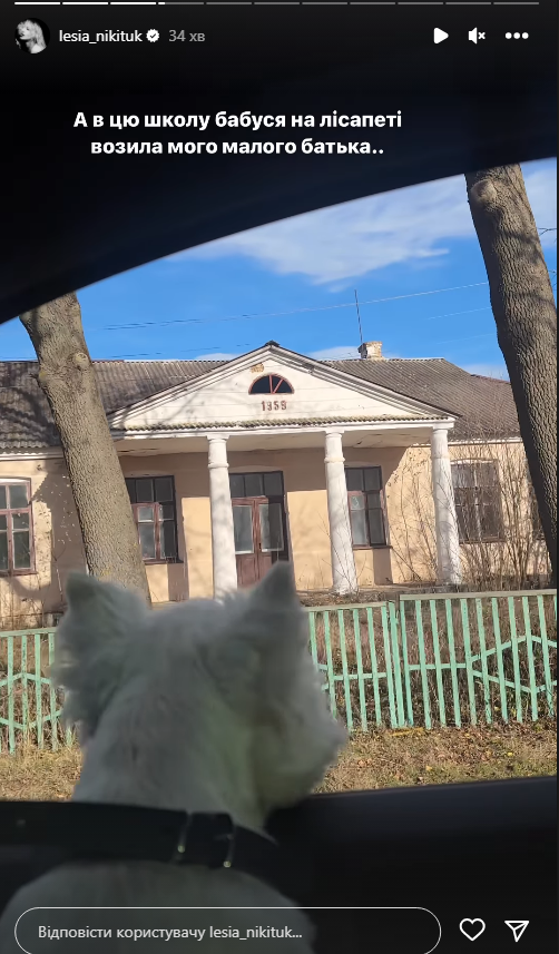 Она также показала в инстаграме кадры знакомой местности, в том числе школы, где учился папа Никитюк, дворы и дом, куда Леся приезжала к бабушке.