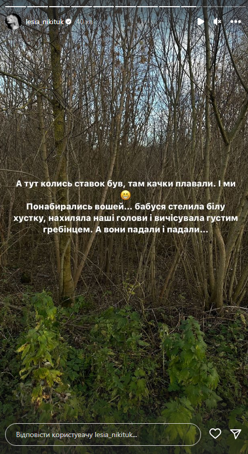 Леся Никитюк показала кадры из села, где жила бабушка / Скриншот с ее инстаграма