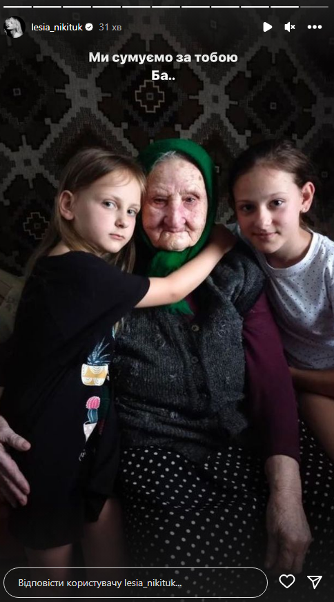 О смерти бабушки Никитюк сообщила в инстаграме. Телеведущая показала совместное фото с ней.