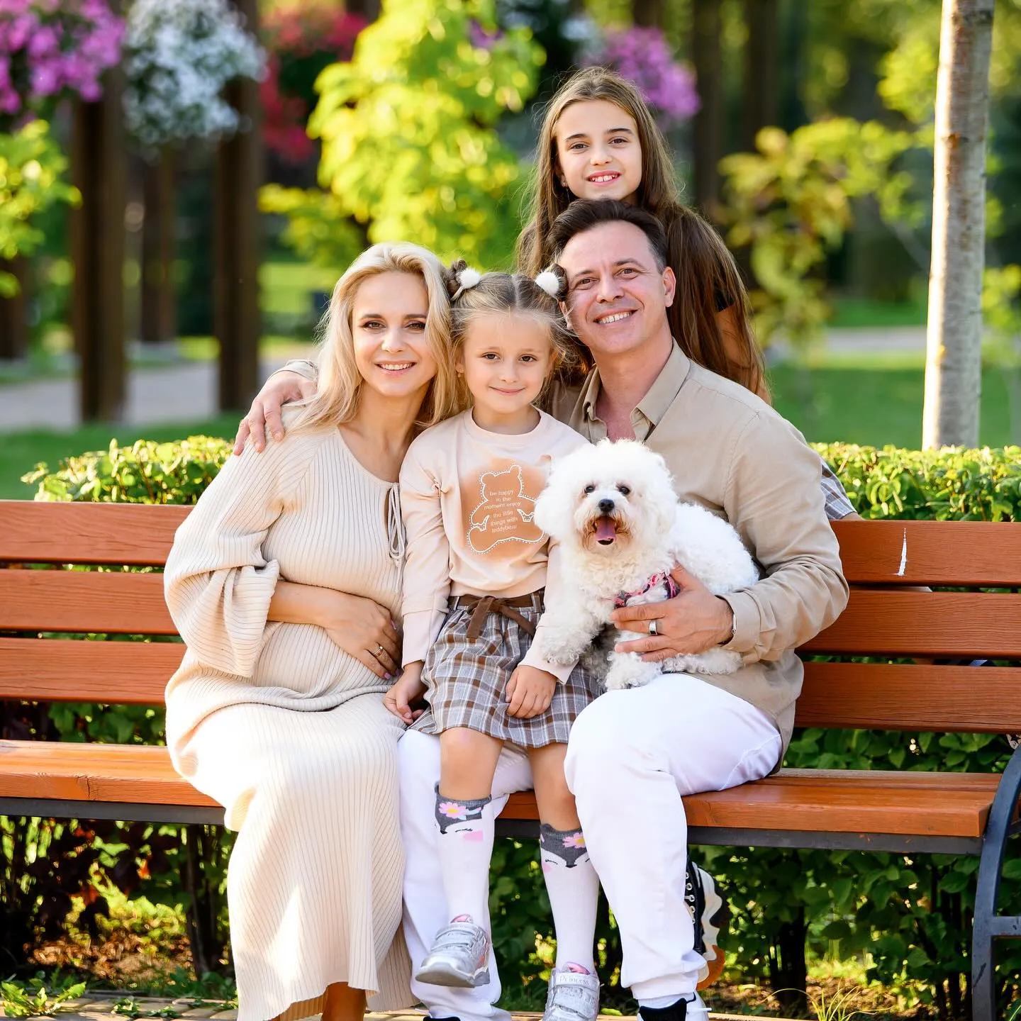 На радостных кадрах Лилия Ребрик позировала с дочерьми и мужем Андреем Диким. Все семья счастливо улыбалась.
