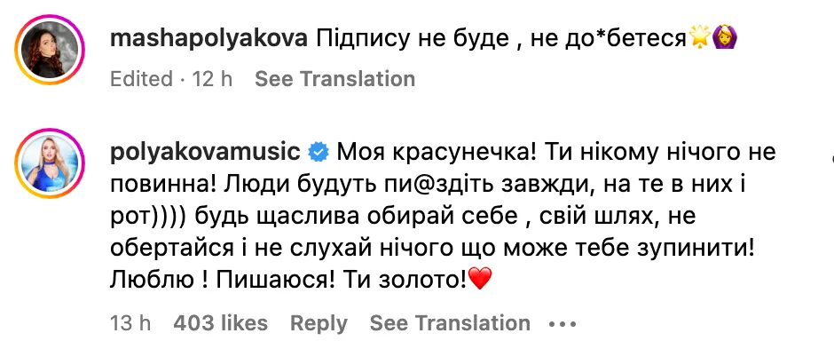 Оля Полякова вступилась за дочь / Скриншот комментариев