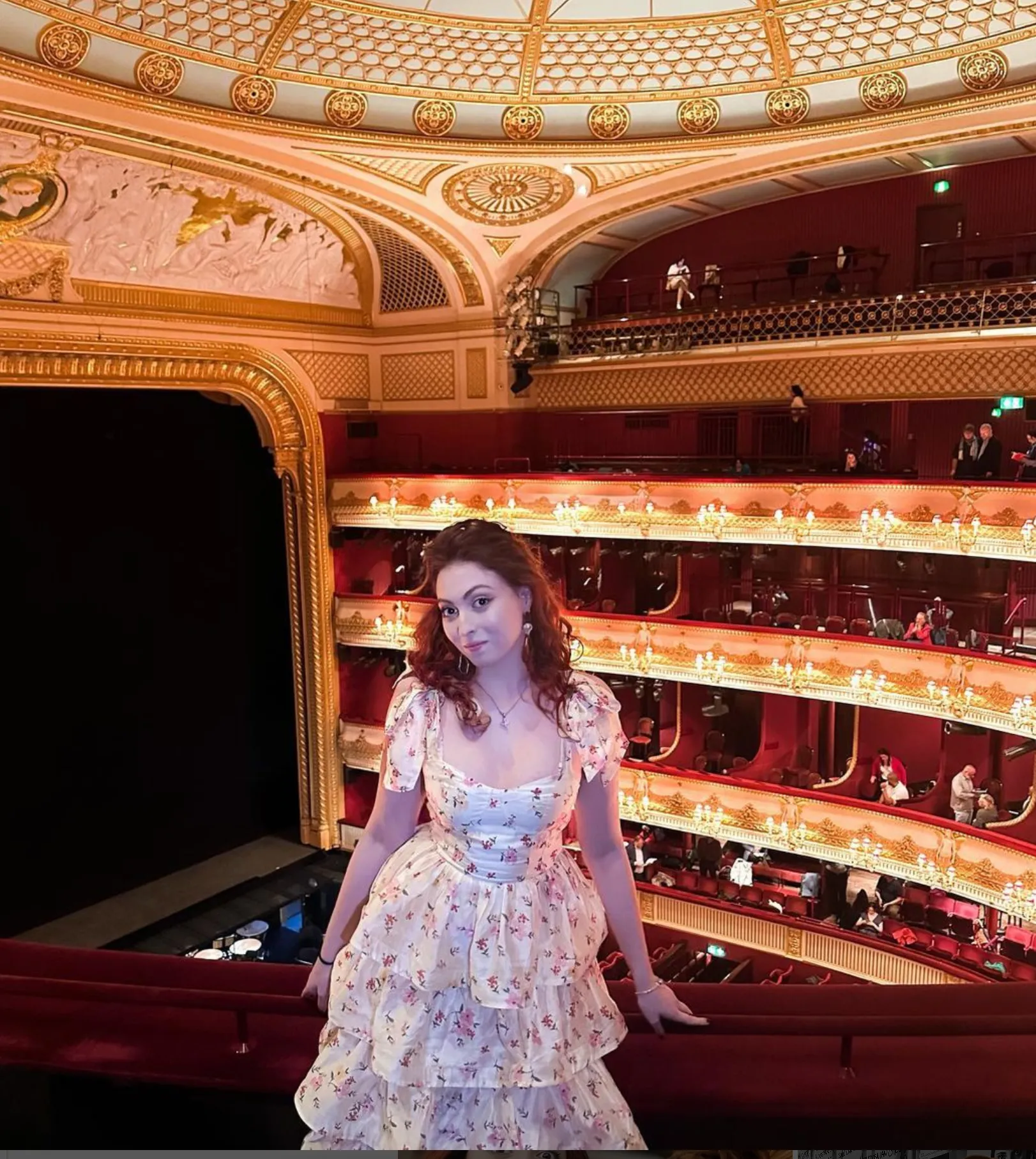 Мария показала фото из театра в соцсетях. На фотографии девушка позировала в роскошном платье в цветочный узор. Дочь Поляковой заколола волосы и дополнила свой образ украшениями.