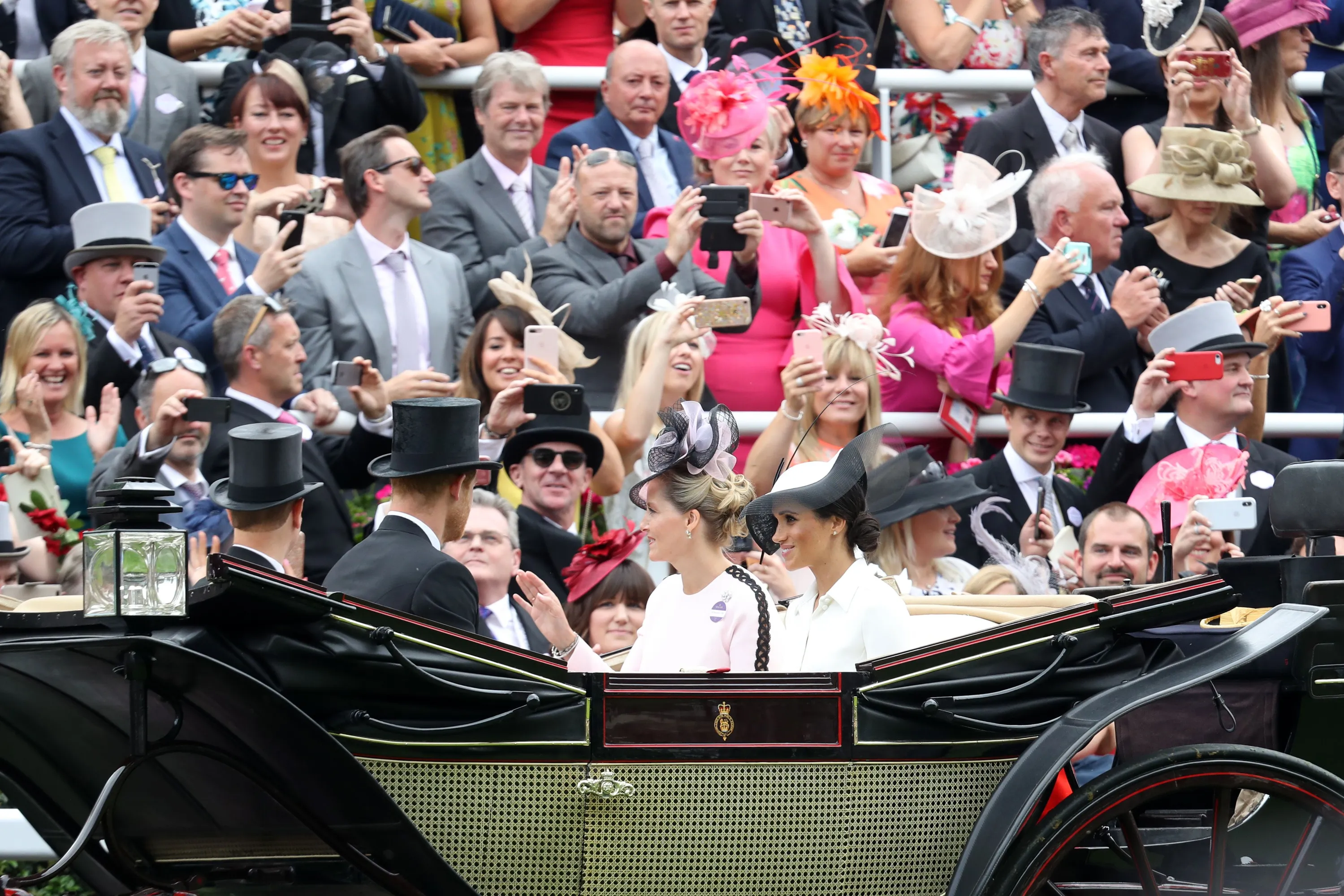 Конные скачки стартовали с торжественного королевского шествия от Виндзорского замка до ипподрома. А забег начинается, когда прибывает королева Елизавета II.