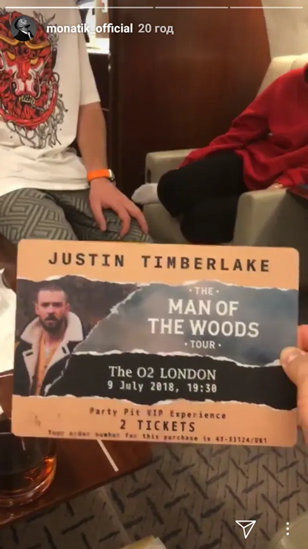 Угощал певец своих друзей шоколадным тортом и шампанским. От коллег и друзей Монатик получил невероятный подарок – билет на концерт популярного американского певца Джастина Тимберлейка, который состоится 9 июля в Лондоне. Вероятно, это была одна из грез украинца, поскольку он долгое время не скрывал эмоций и счастливо смотрел на подарок.