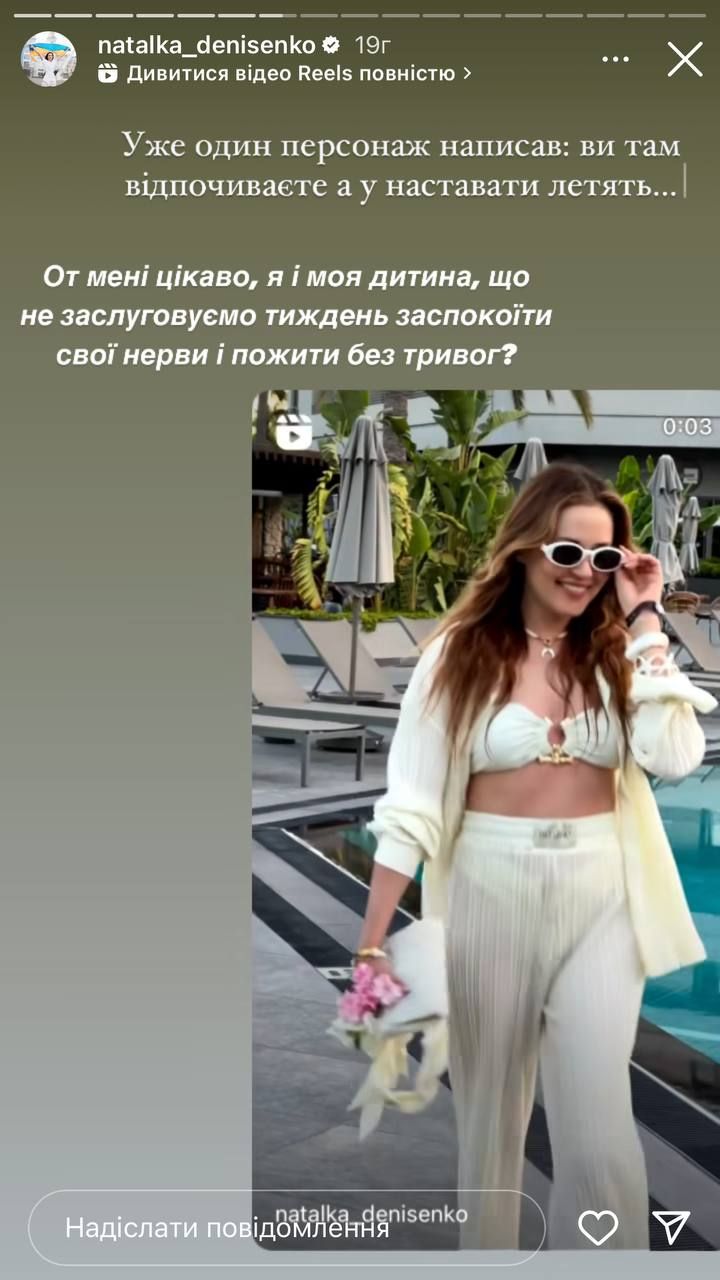 Некоторые фаны написали звезде гневные комментарии о несправедливости. Поскольку когда она с ребенком отдыхает на море, другие украинцы ежедневно слышат прилеты. Но Наталка Денисенко убеждена, что заслуживает на этот короткий отпуск.