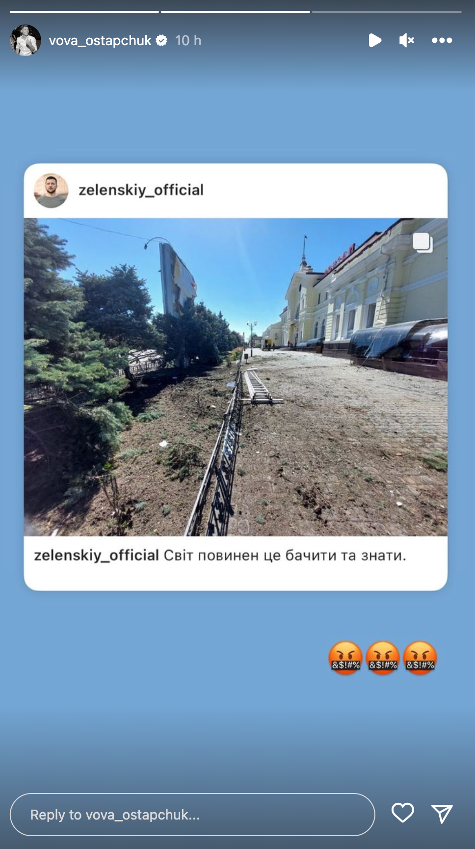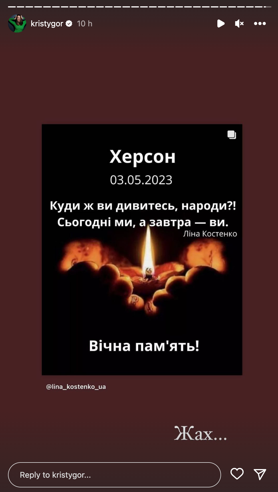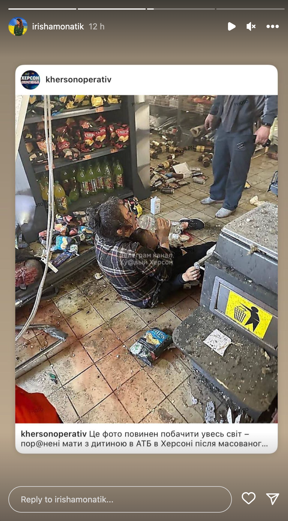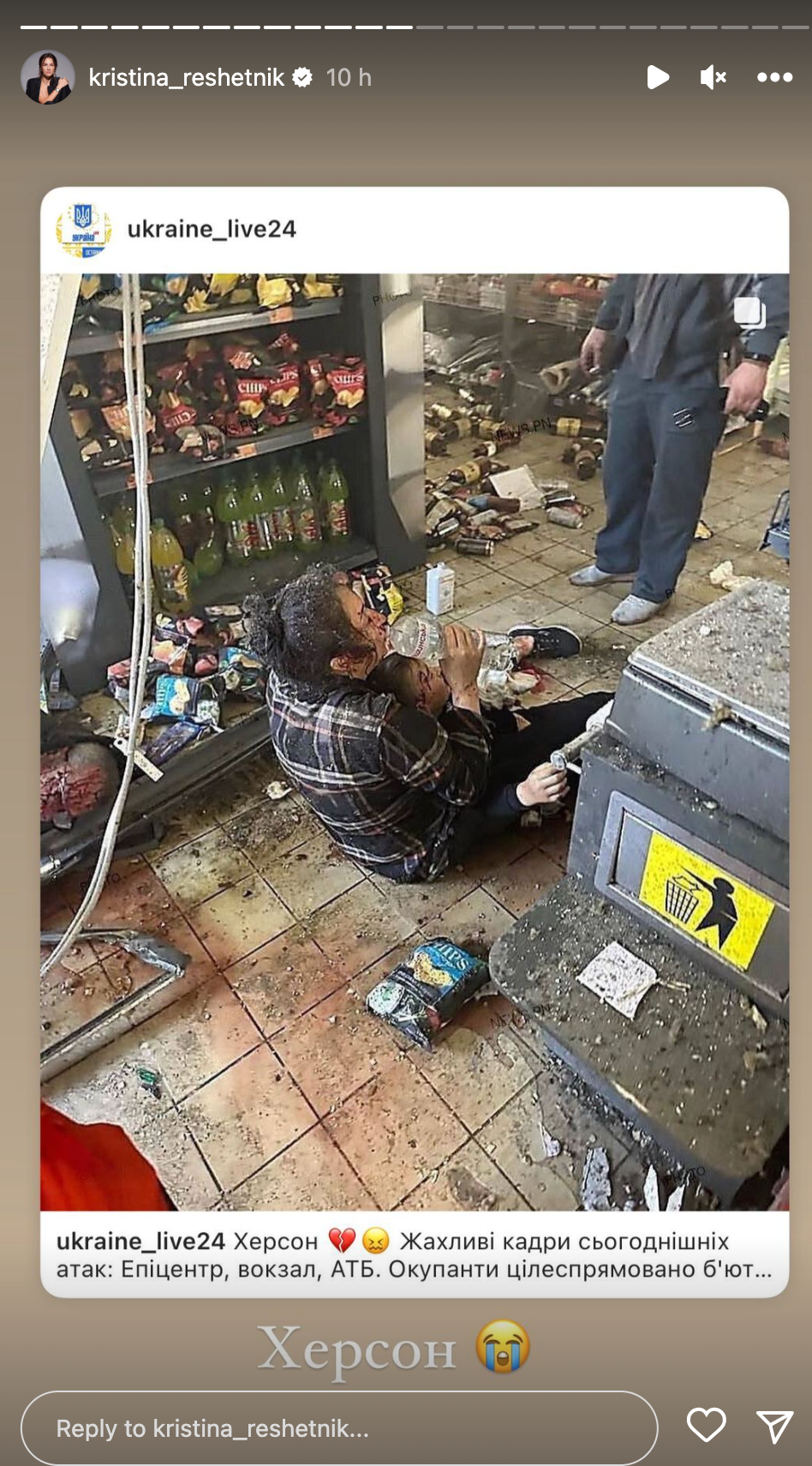 Как украинские артисты реагируют на удар по Херсону / Фото с инстаграм-сторис