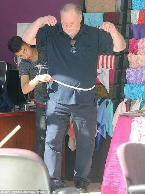Кроме этого, постановкой оказались фотографии, на которых Томас Маркл изучает книгу о достопримечательностях Великобритании, и снимает мерки для пошива костюма на свадьбе знаменитой дочери. По информации СМИ, мошенники даже наняли продавца магазина, который сделал замеры. 17-летний студент Дэвид Флорес за свою работу получил 15 долларов. Студент не знал, для кого он делает одолжение и что эти снимки облетят весь мир. Впоследствии продавец "увидел снимки в новостях и понял, что это отец Меган".