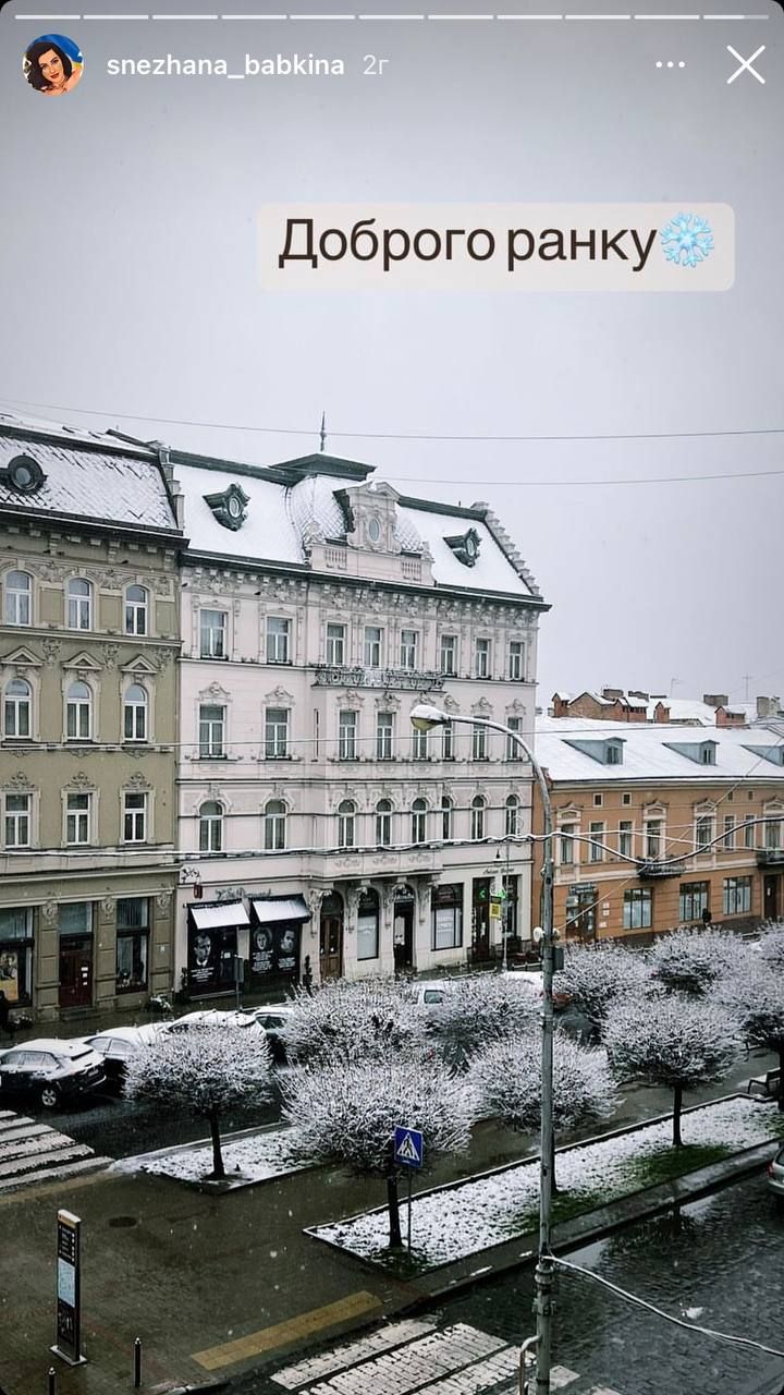 Снег во Львове / Скриншот инстаграм-сторис Цыбульской