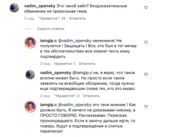 Но на заявления о хейте певица ответила, будто у нее есть доказательства своих слов. Однако пока она не собирается их обнародовать. "Если я захочу дальше идти, то будут подтверждения и слиты переписки", – пригрозила исполнительница.