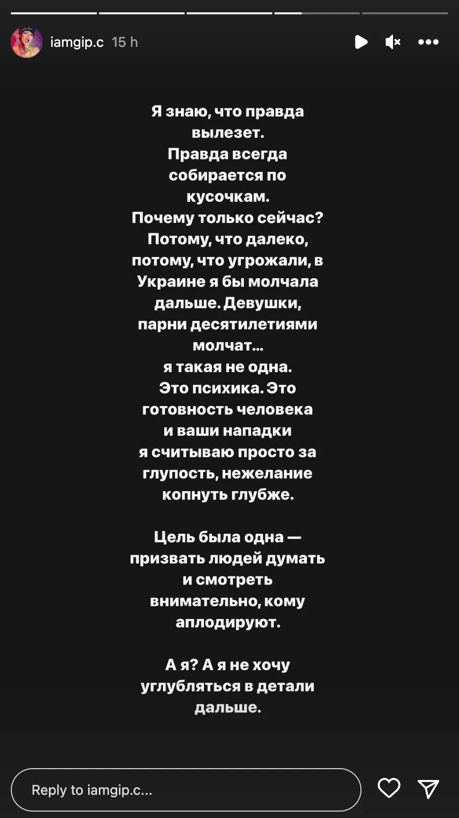 Комментарии GIP C о скандале с Потапом / Скриншот с ее инстаграммы